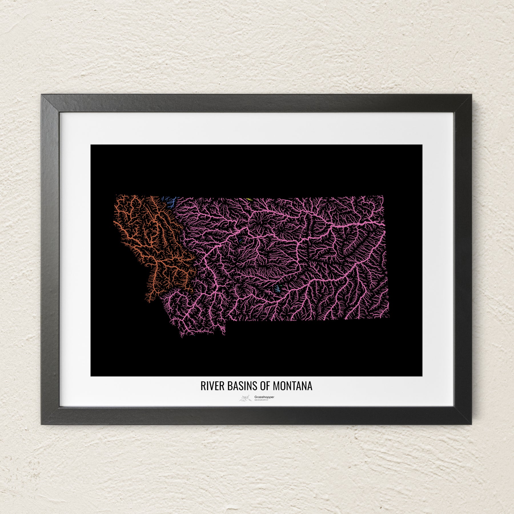 Montana - Mapa de cuencas fluviales, colores del arcoíris - Arte mural