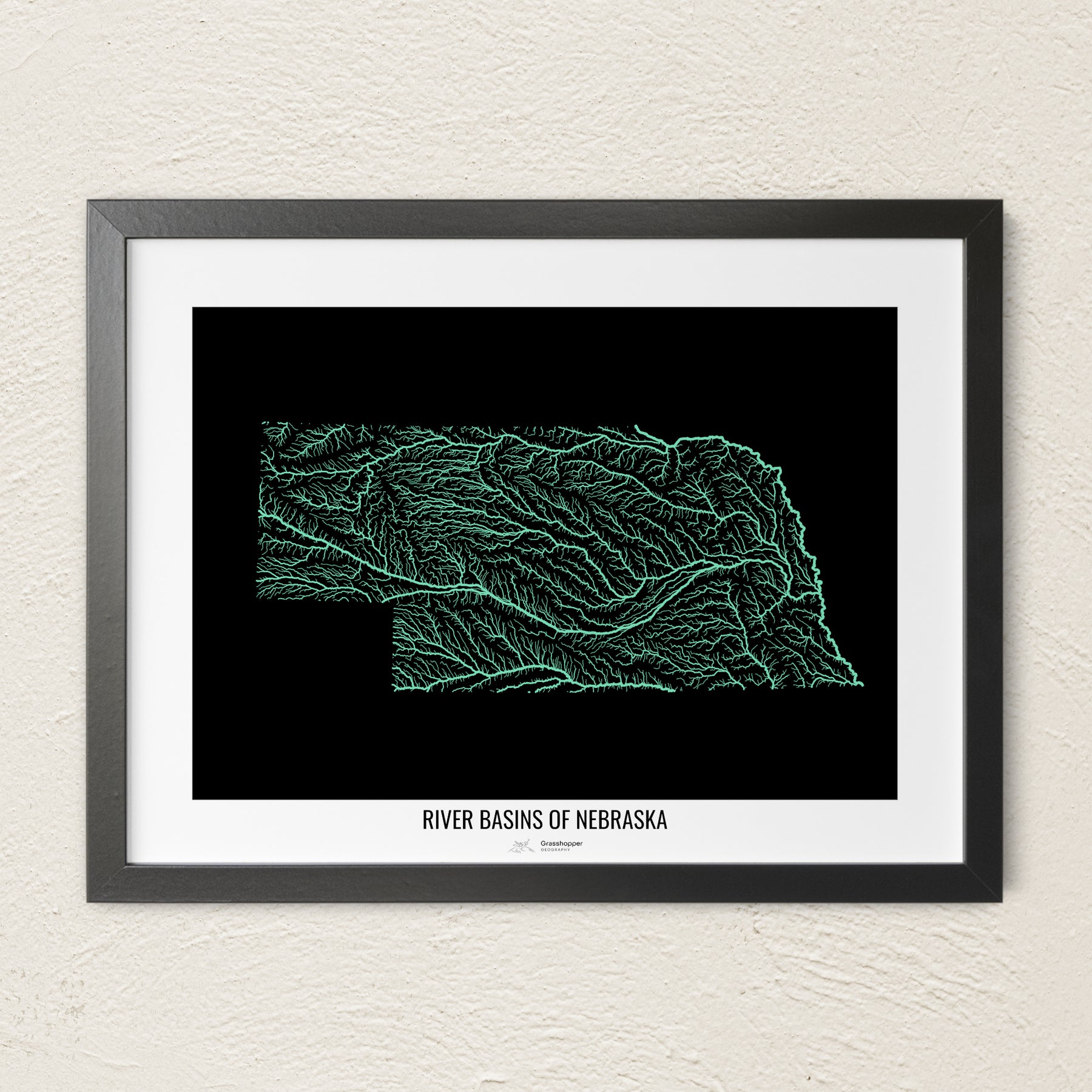 Nebraska - Mapa de la cuenca del río, colores pastel - Arte mural