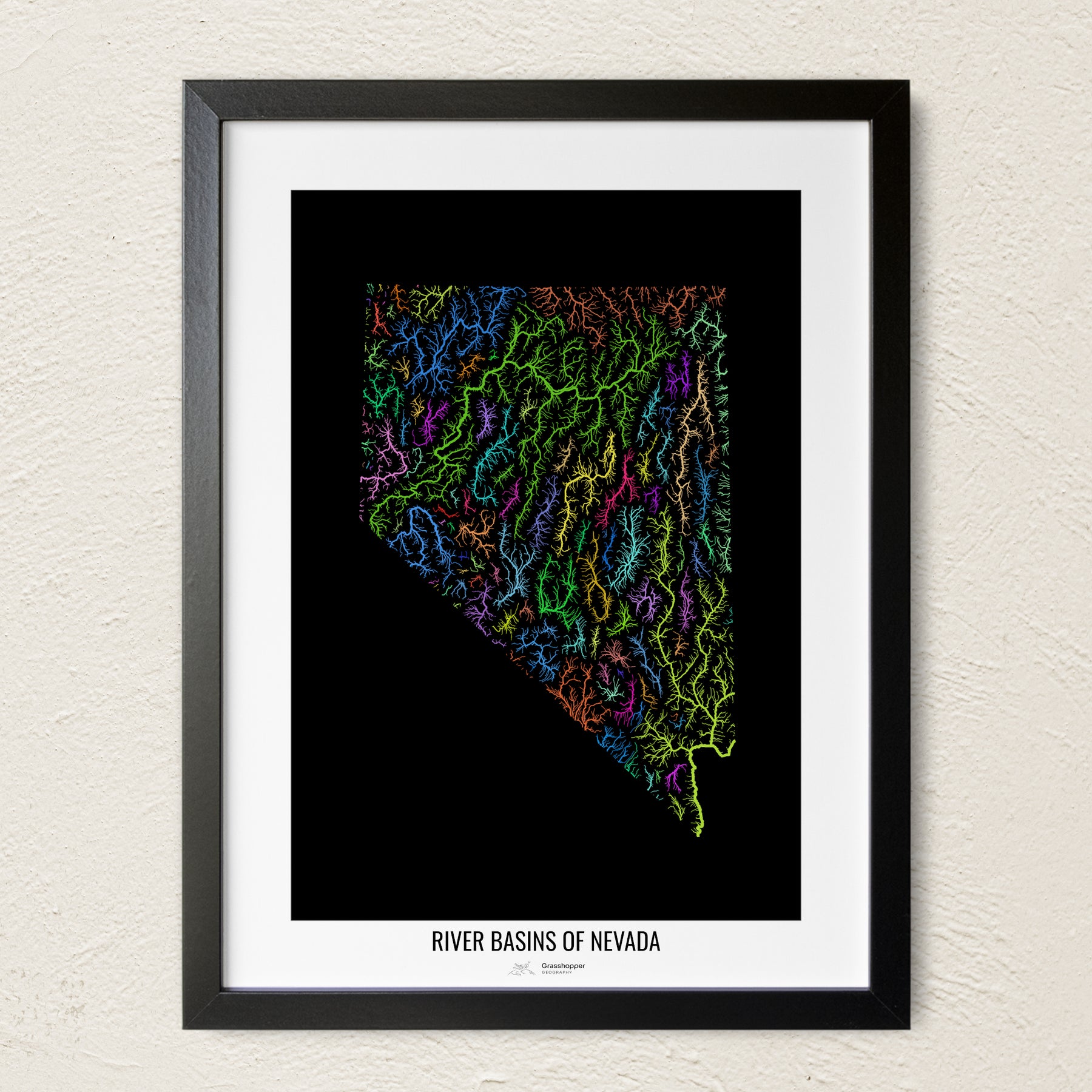 Nevada - Mapa de la cuenca del río, colores del arcoíris - Arte mural