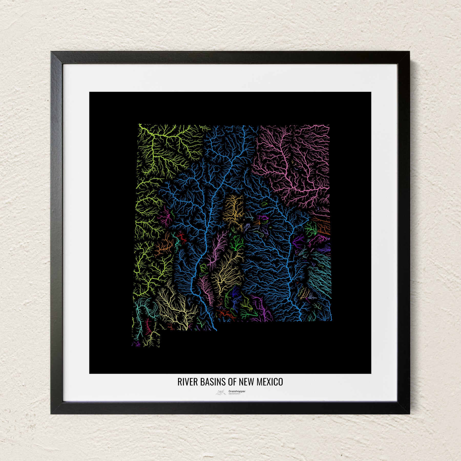 Nuevo México - Mapa de la cuenca del río, colores del arcoíris - Arte mural