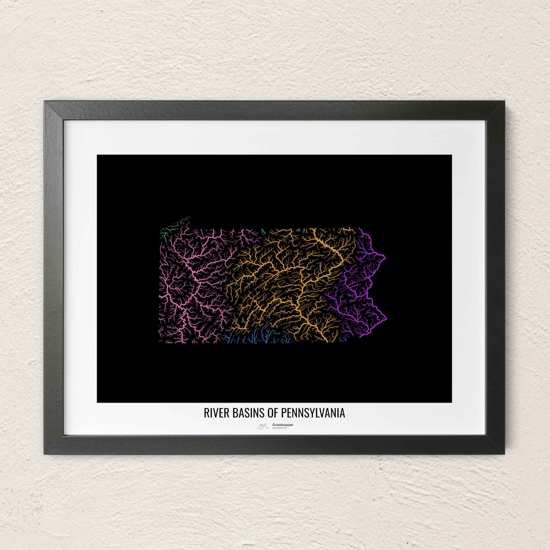 Pensilvania - Mapa de la cuenca del río, colores del arcoíris - Arte mural