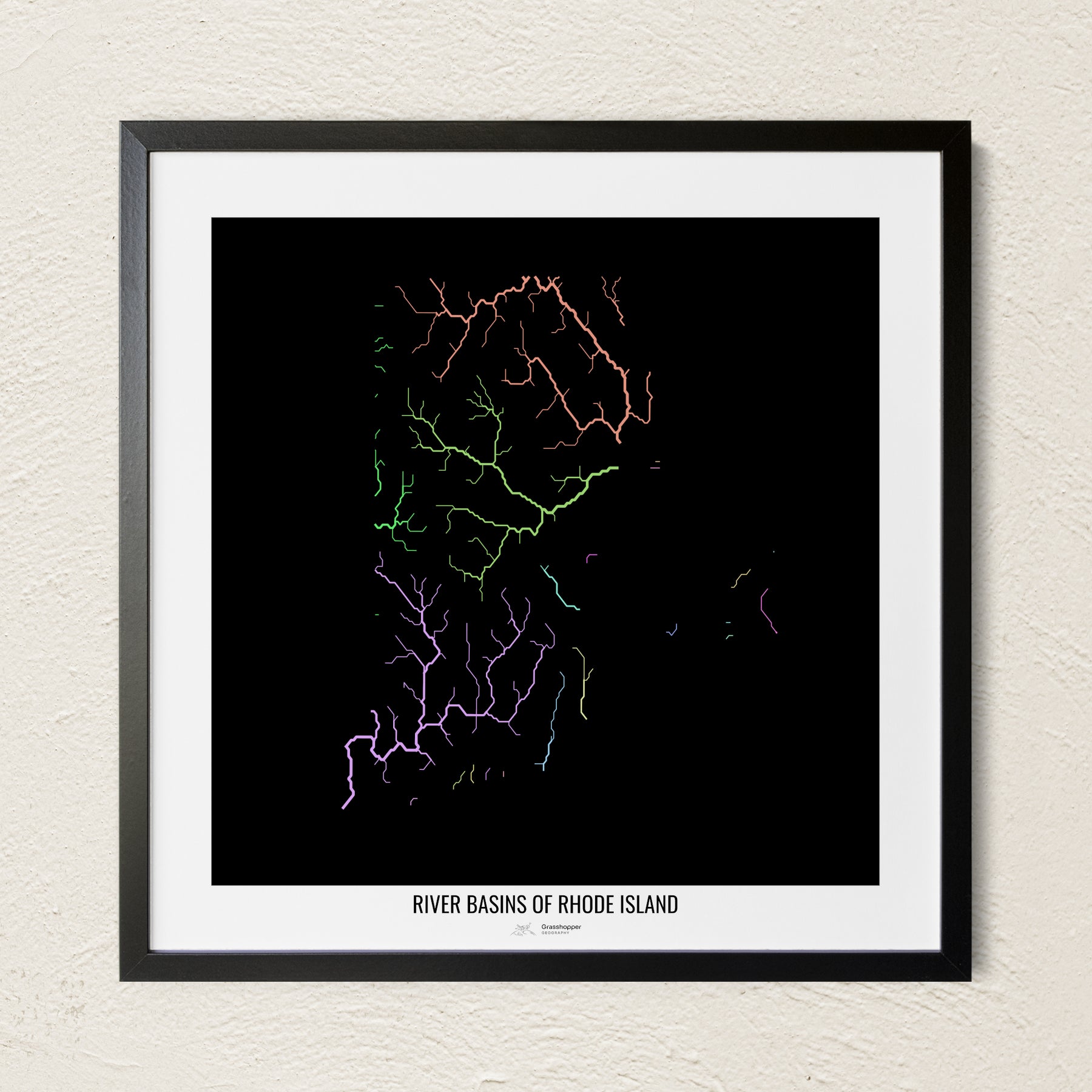 Rhode Island - Mapa de cuencas fluviales, colores pastel - Arte mural