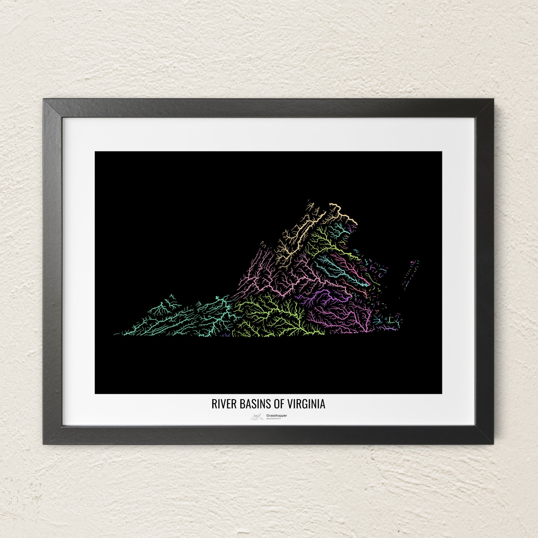 Virginia - Mapa de la cuenca del río, colores pastel - Arte mural