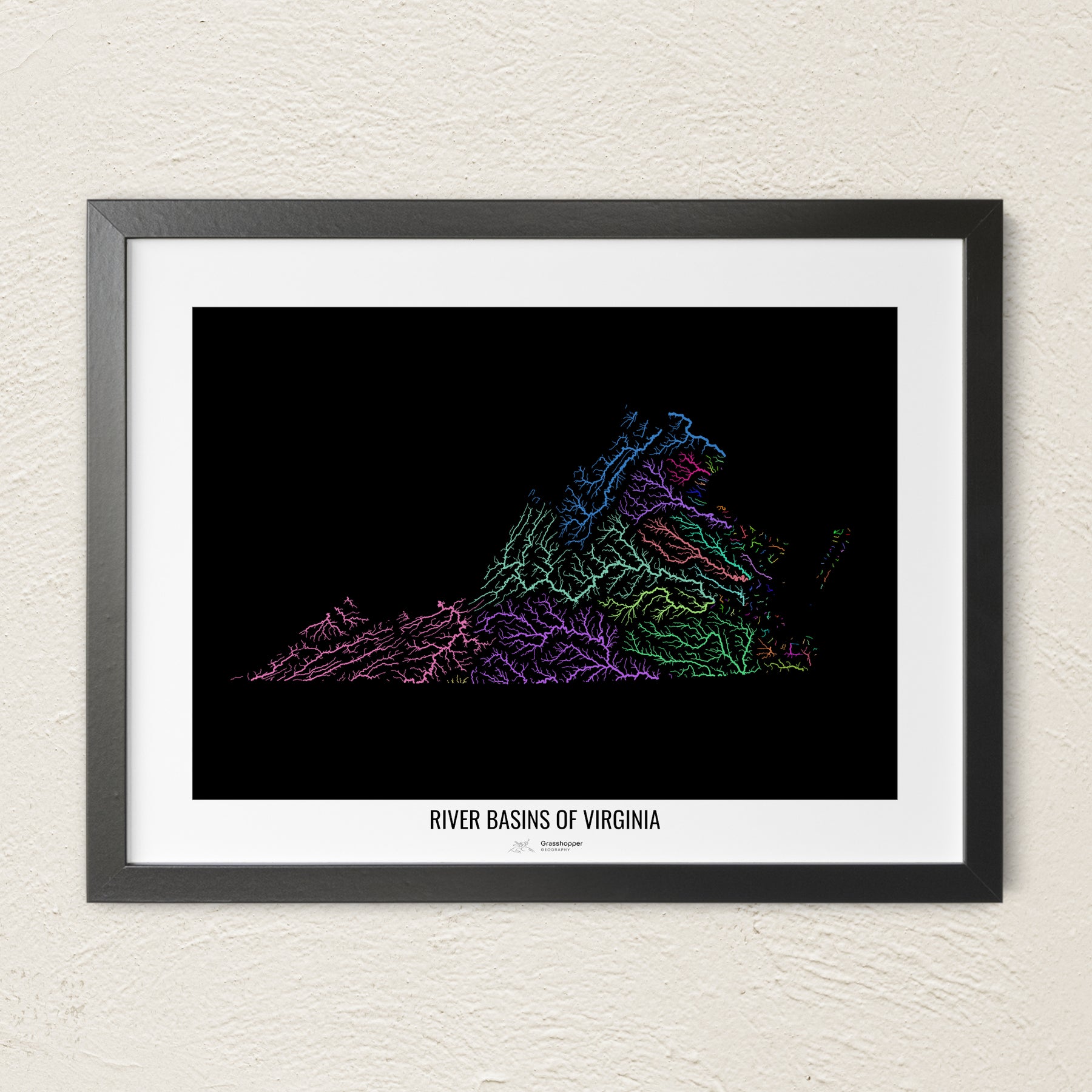 Virginia - Mapa de la cuenca del río, colores del arcoíris - Arte mural