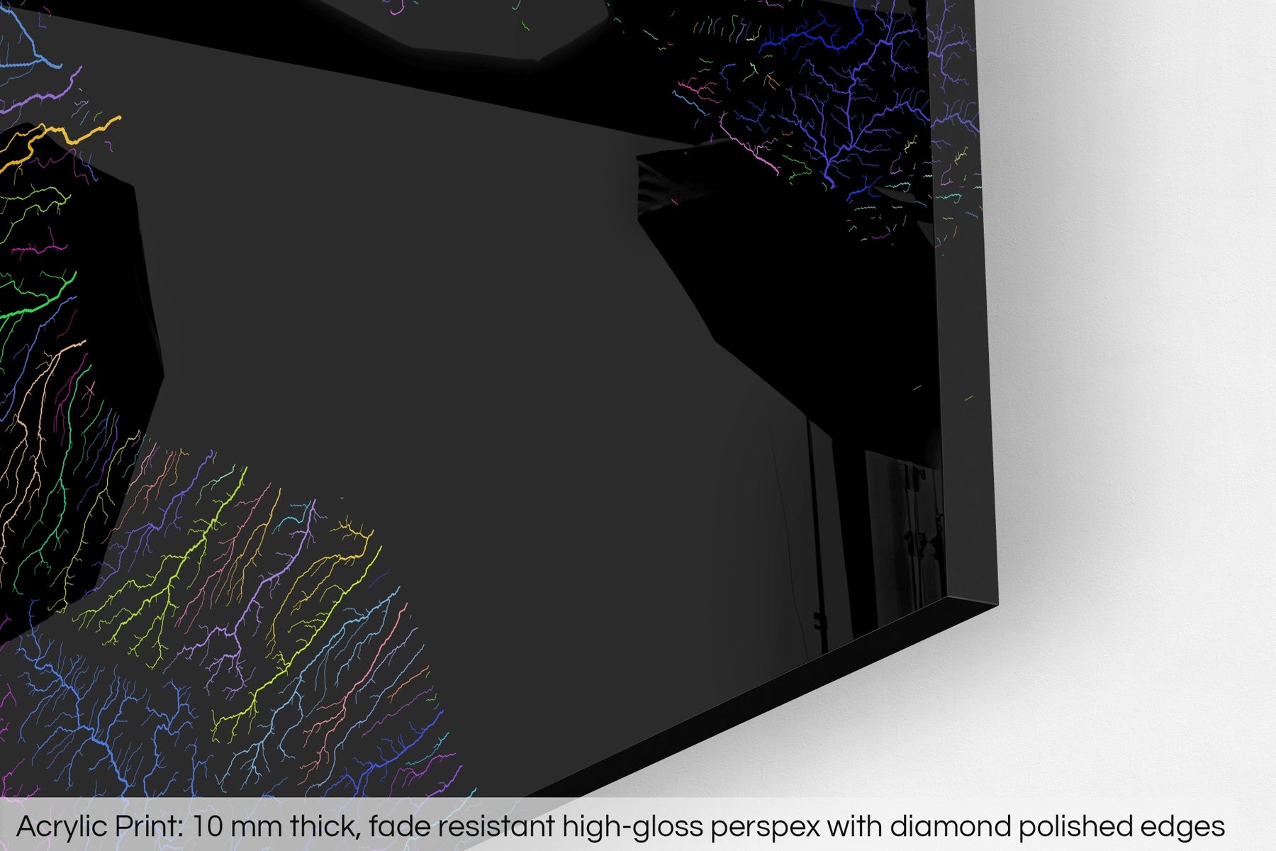 The fine art Giclée print is hand mounted onto a 10mm thick, premium polished, high-gloss acrylic glass that results in a vibrant finish. The transparency of the acrylic enhances the colours and details of the artwork, creating a stunning visual effect that will make a bold statement in any space.