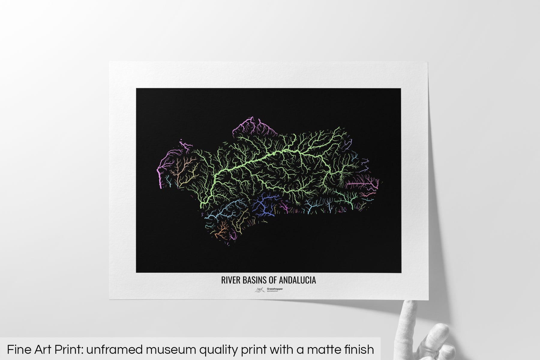 High resolution river basin map, showing each catchment area in a different colour. Thanks to its soft pastel tones the map fits well into most interiors.