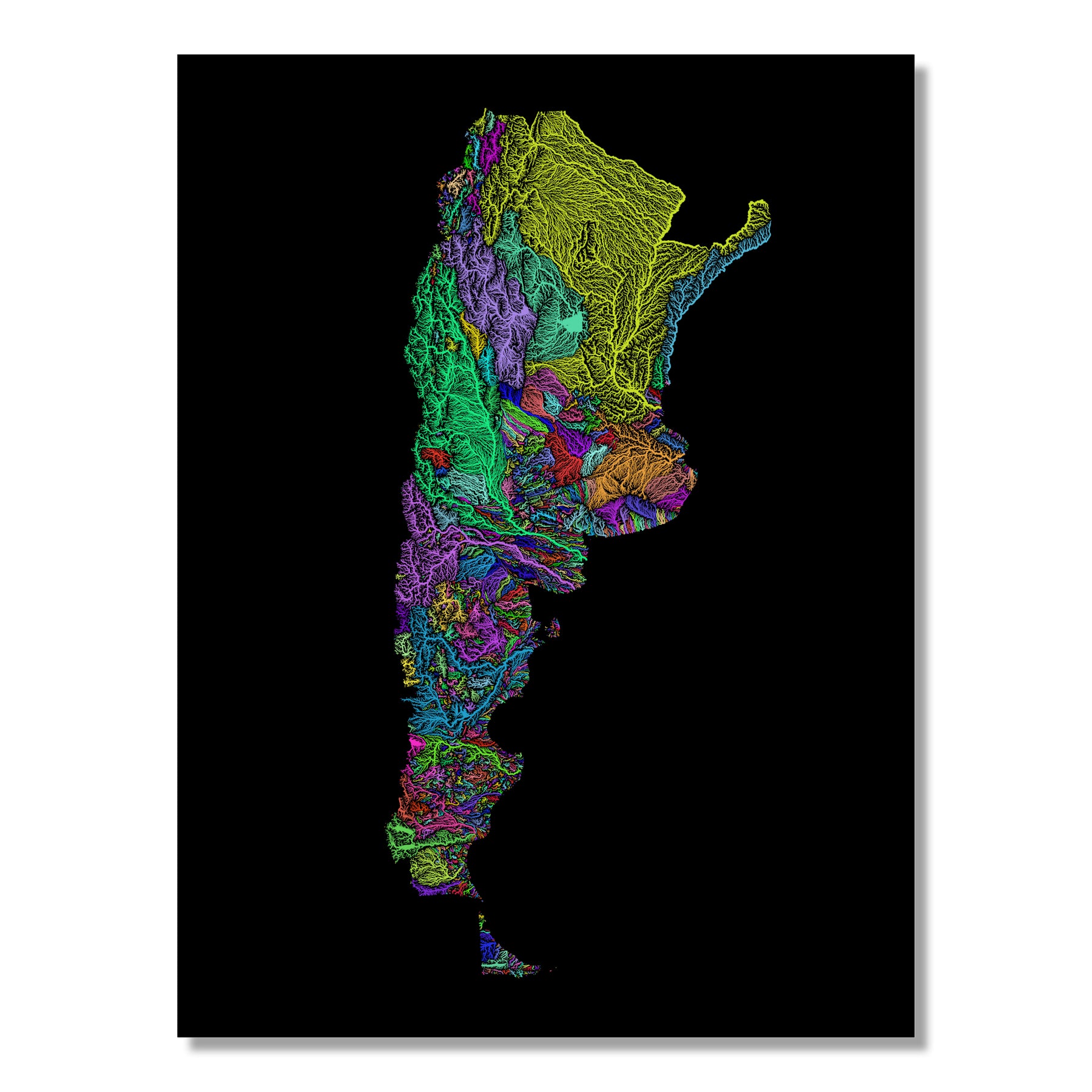This high-resolution river basin map shows each catchment area in a different colour. Its vibrant colour scheme makes this map a lively addition to any space.