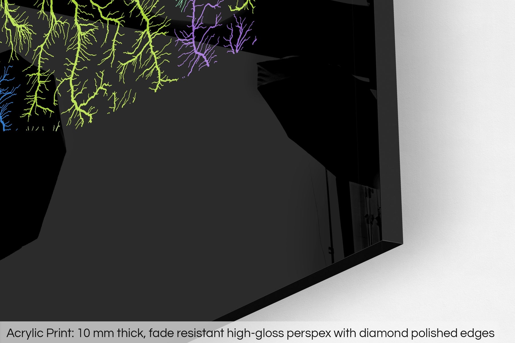 The fine art Giclée print is hand mounted onto a 10mm thick, premium polished, high-gloss acrylic glass that results in a vibrant finish. The transparency of the acrylic enhances the colours and details of the artwork, creating a stunning visual effect that will make a bold statement in any space.