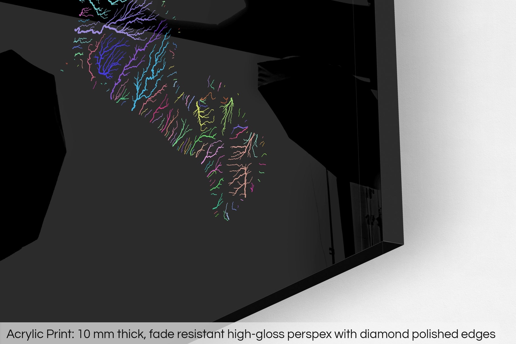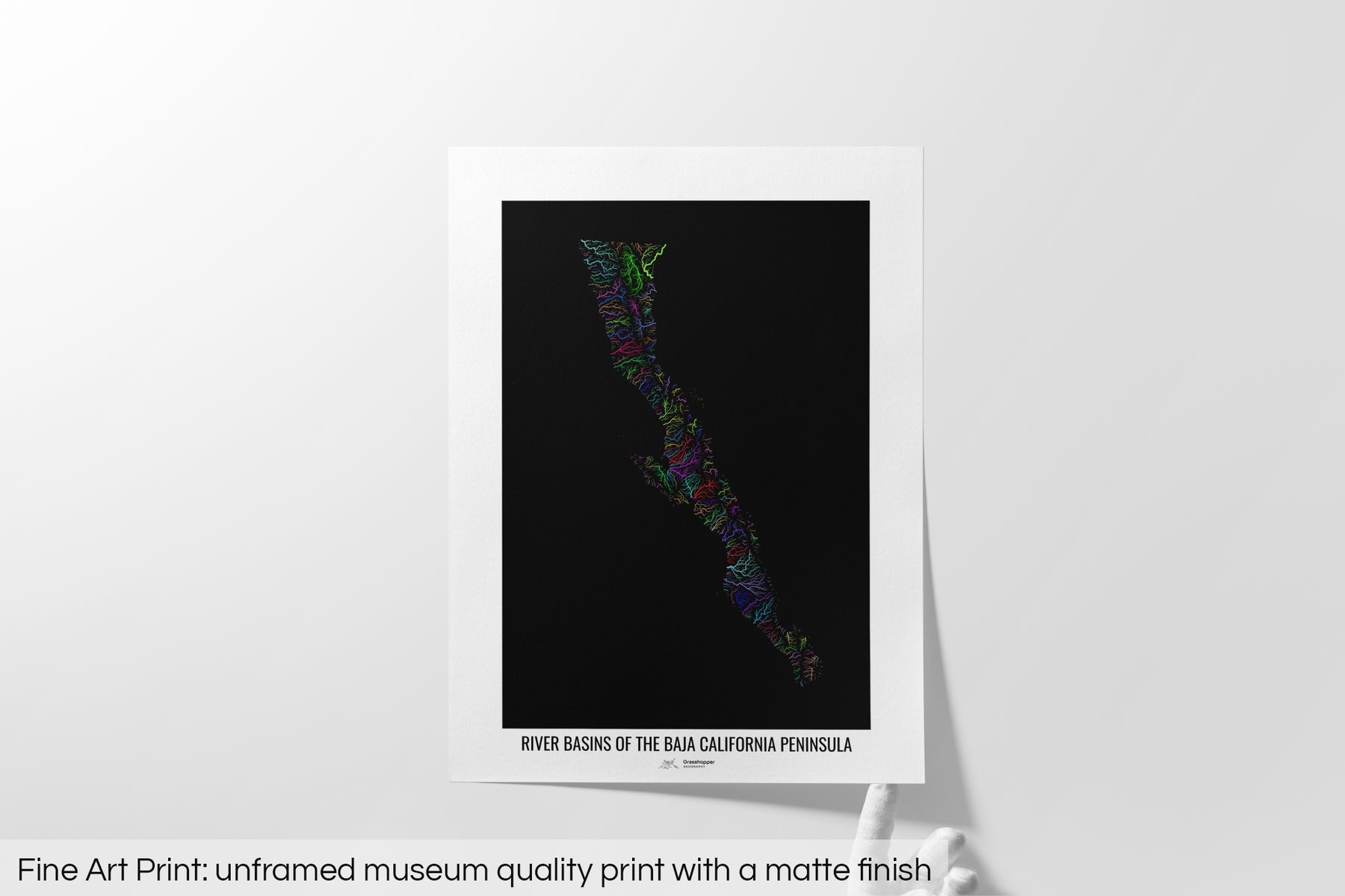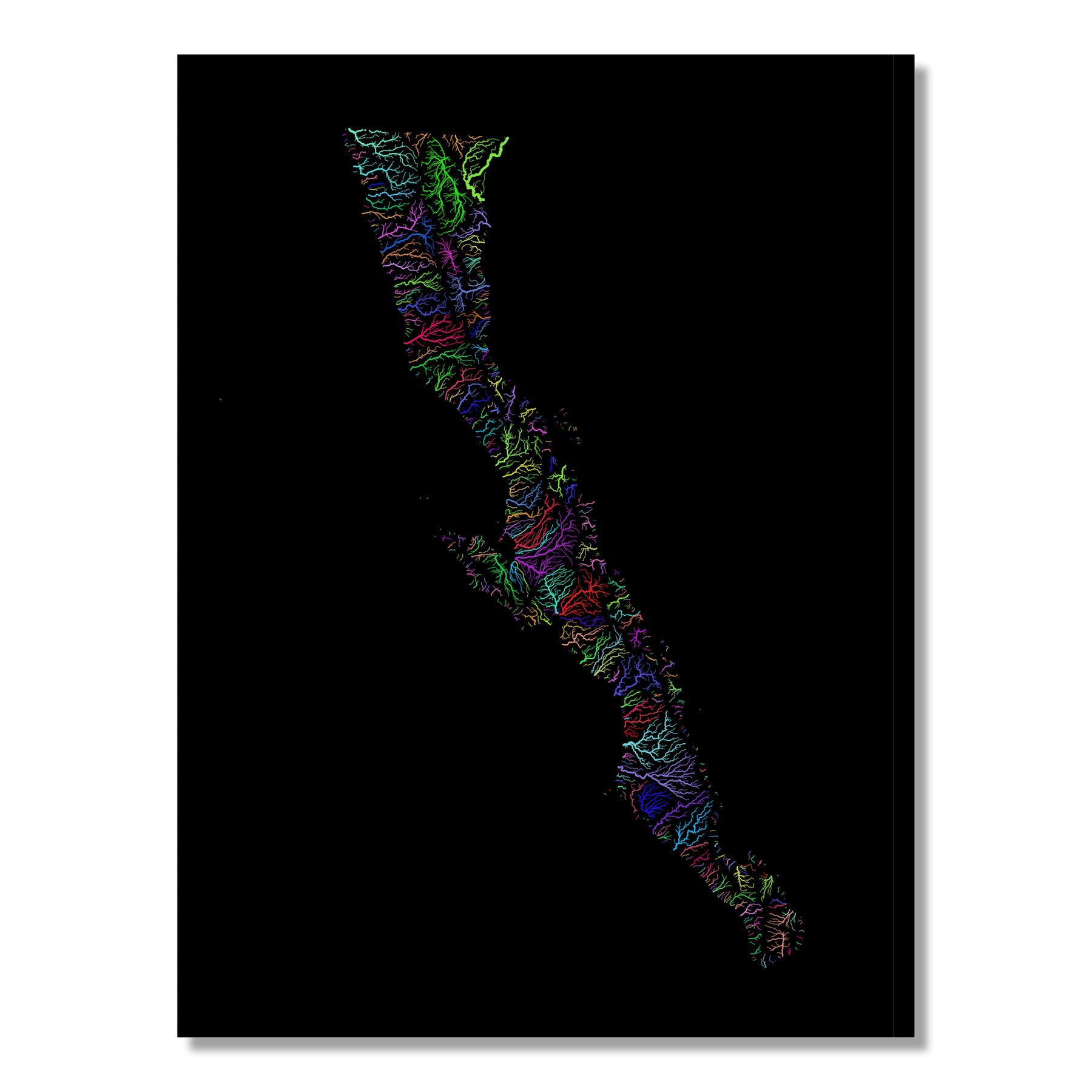 Baja California Peninsula - River basin map, rainbow colours - Wall Art