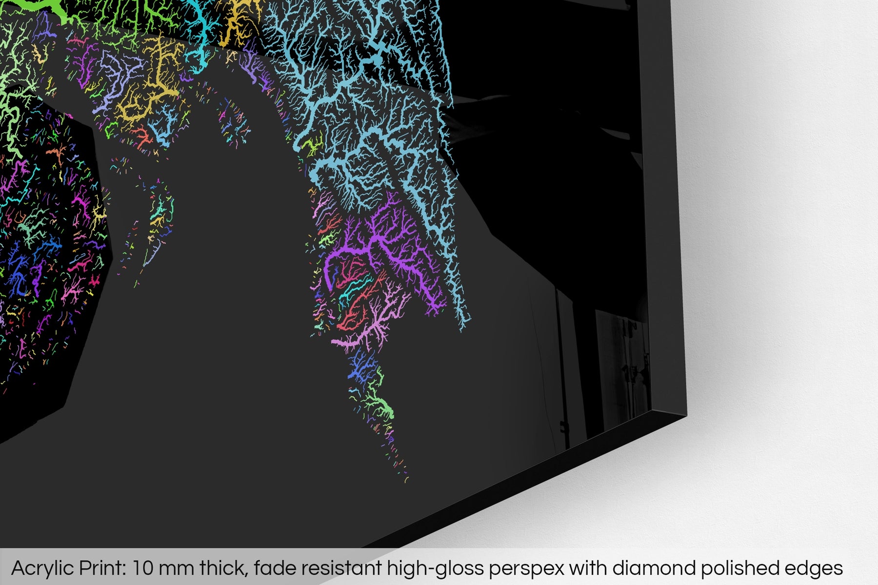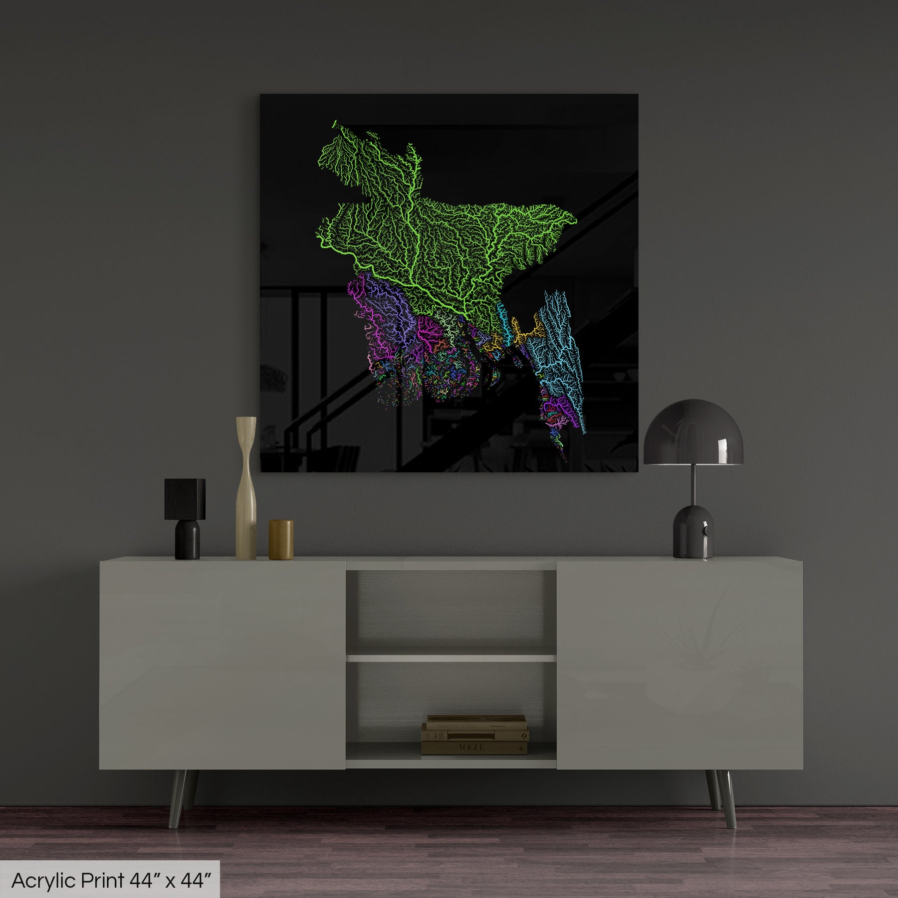 Bangladesh - River basin map, rainbow colours - Wall Art
