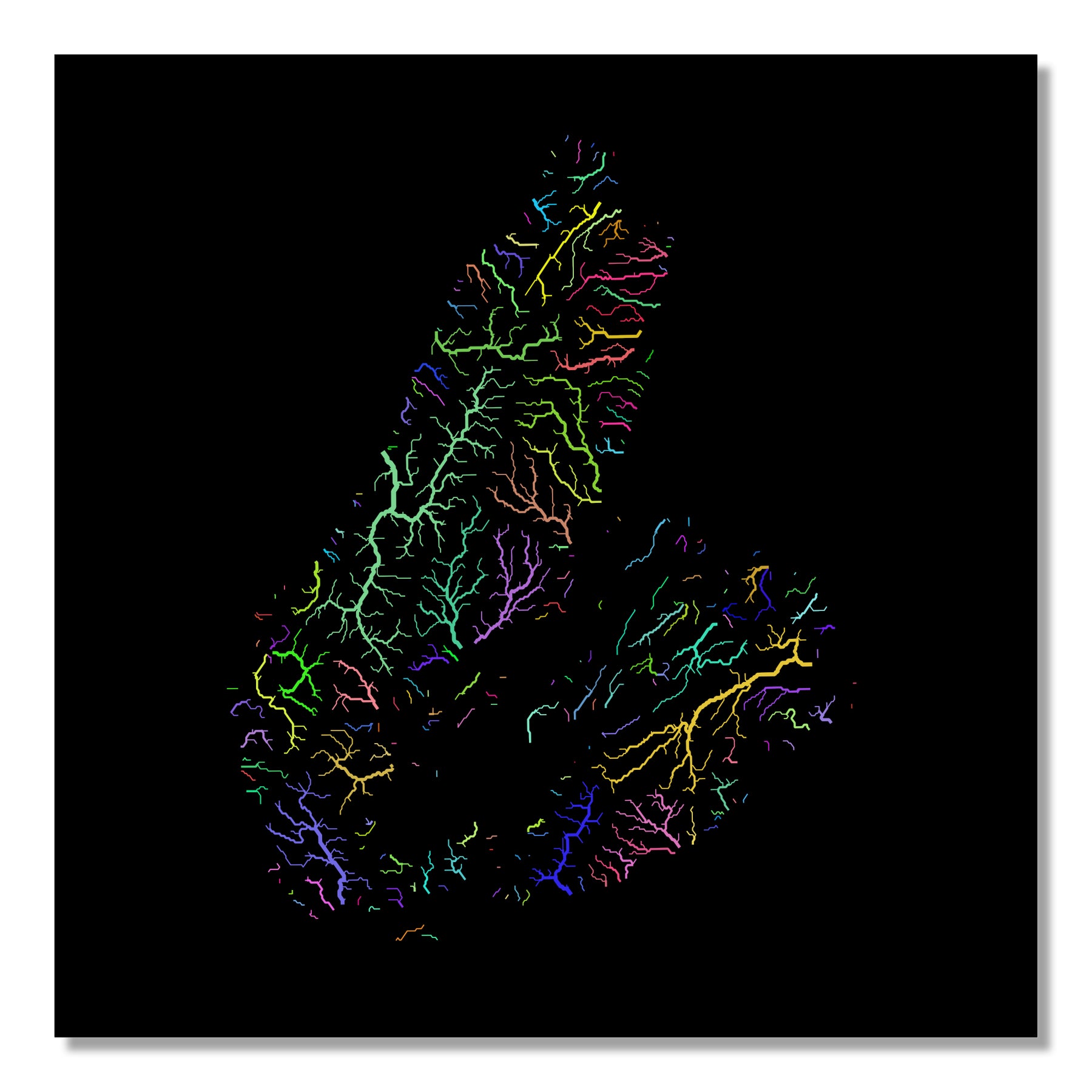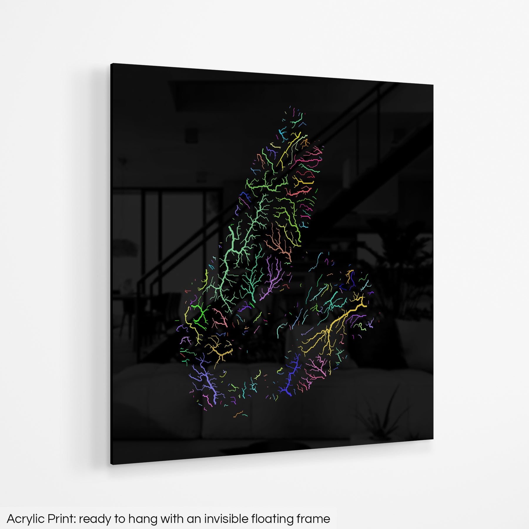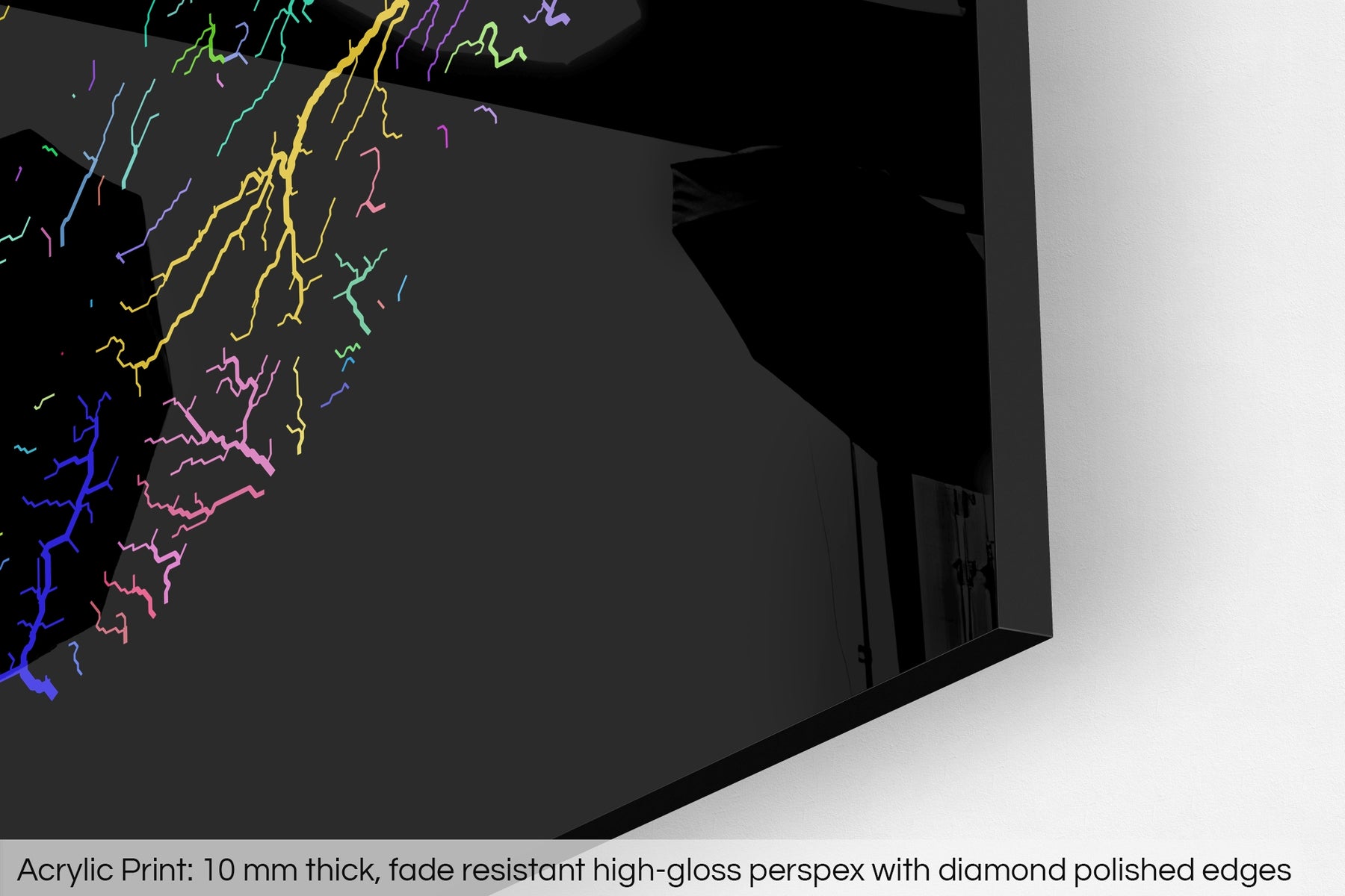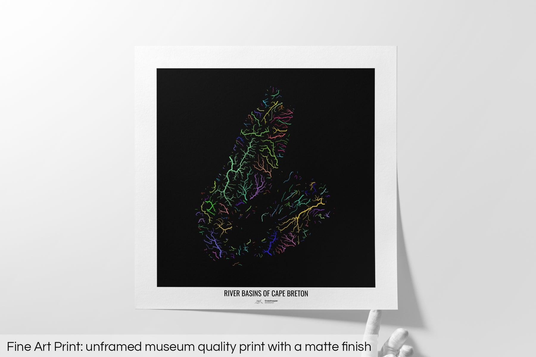 Cape Breton - River basin map, rainbow colours - Wall Art