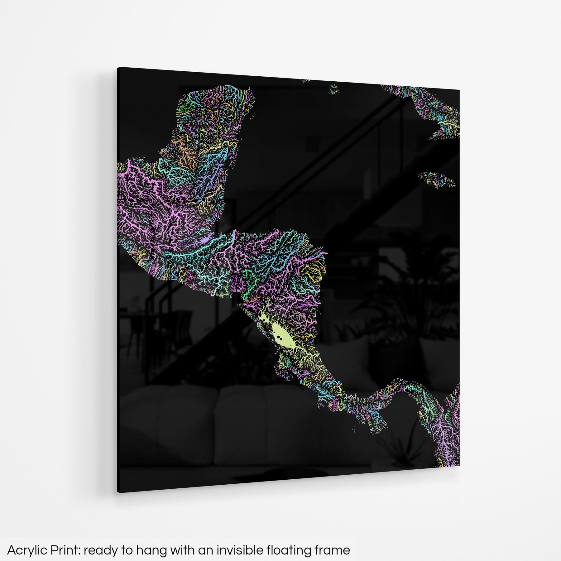 A frame free wall art option that creates a dramatic focal point for any wall. The 3D luminosity of the polished surface brings our maps to life with vibrant colors that will meet the highest expectations.