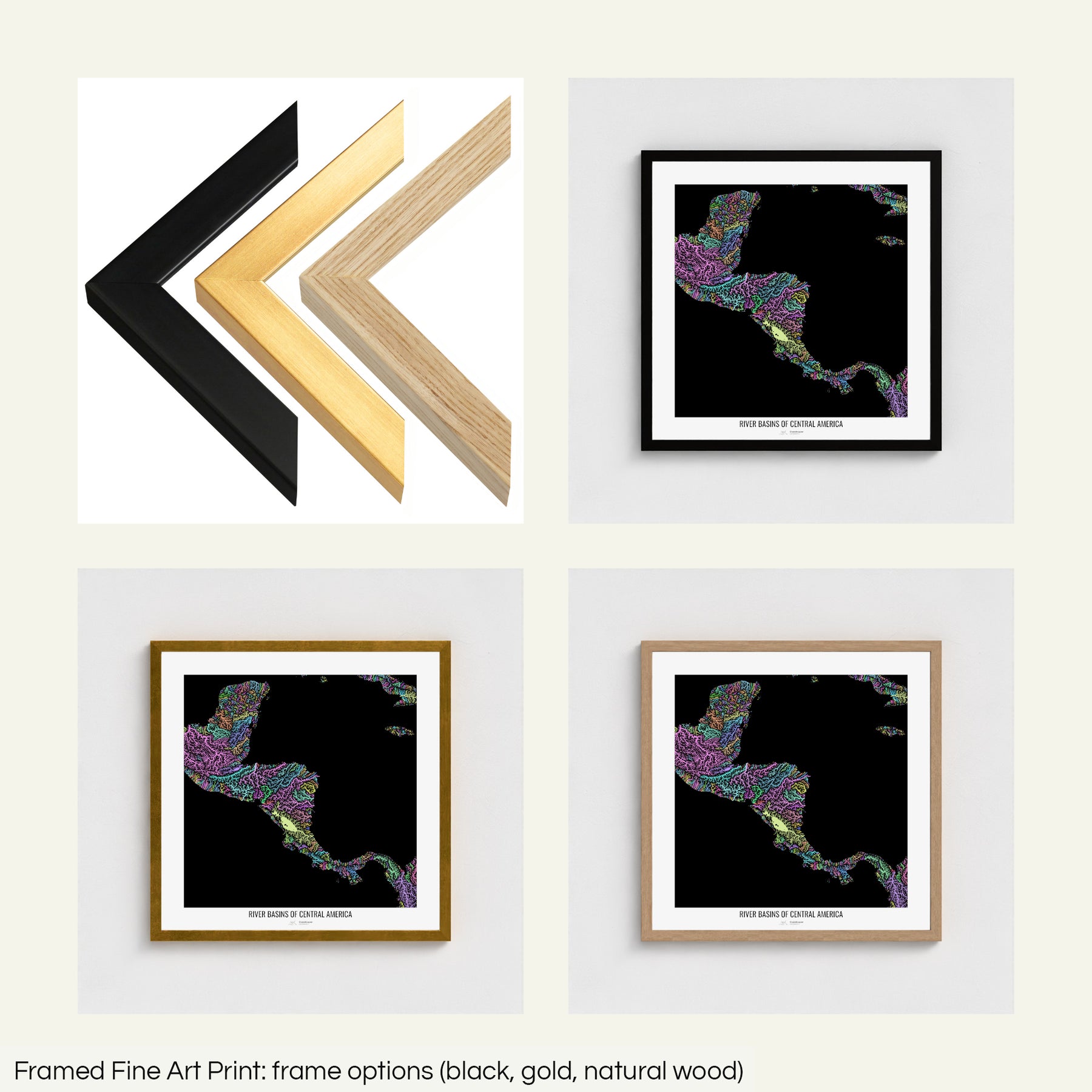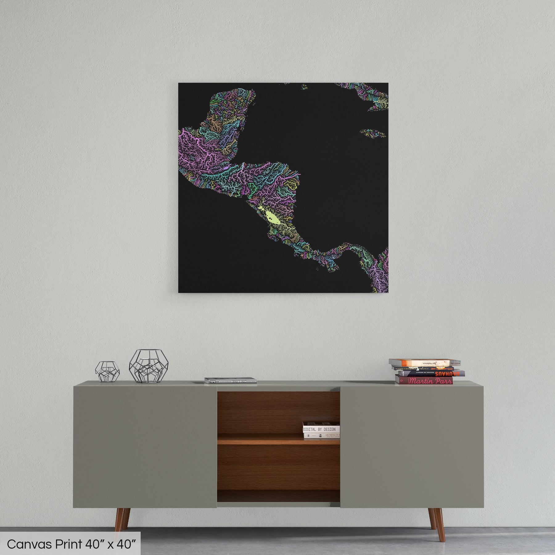Central America - River basin map, pastel colours - Wall Art