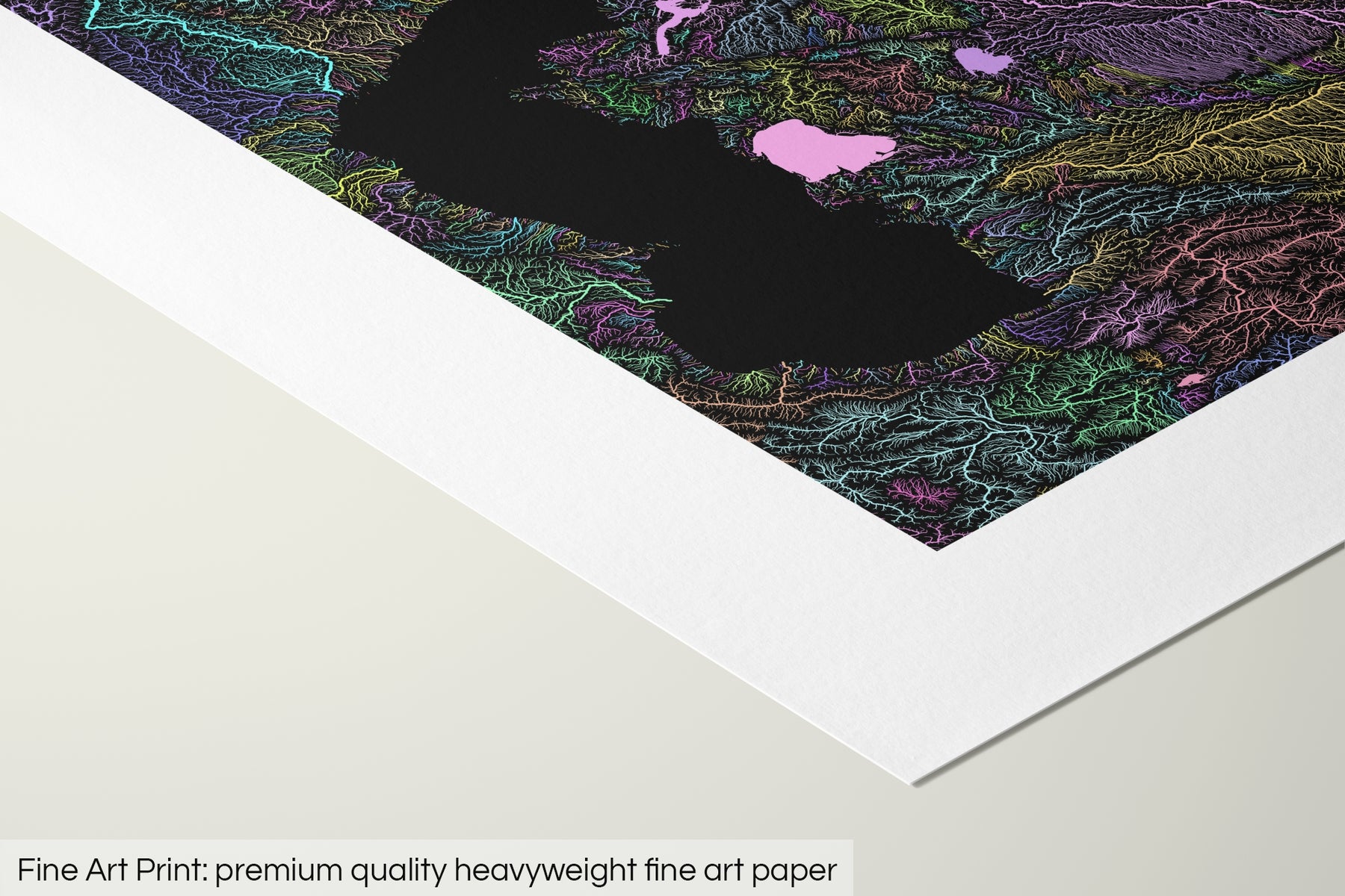 A premium quality heavyweight (200gsm) fine art print material with a smooth, clean finish. This museum-quality paper is remarkably consistent and works perfectly with our colourful maps. The matte finish emphasises different highlights and tones in all of our maps, helping to create stunning works of art.