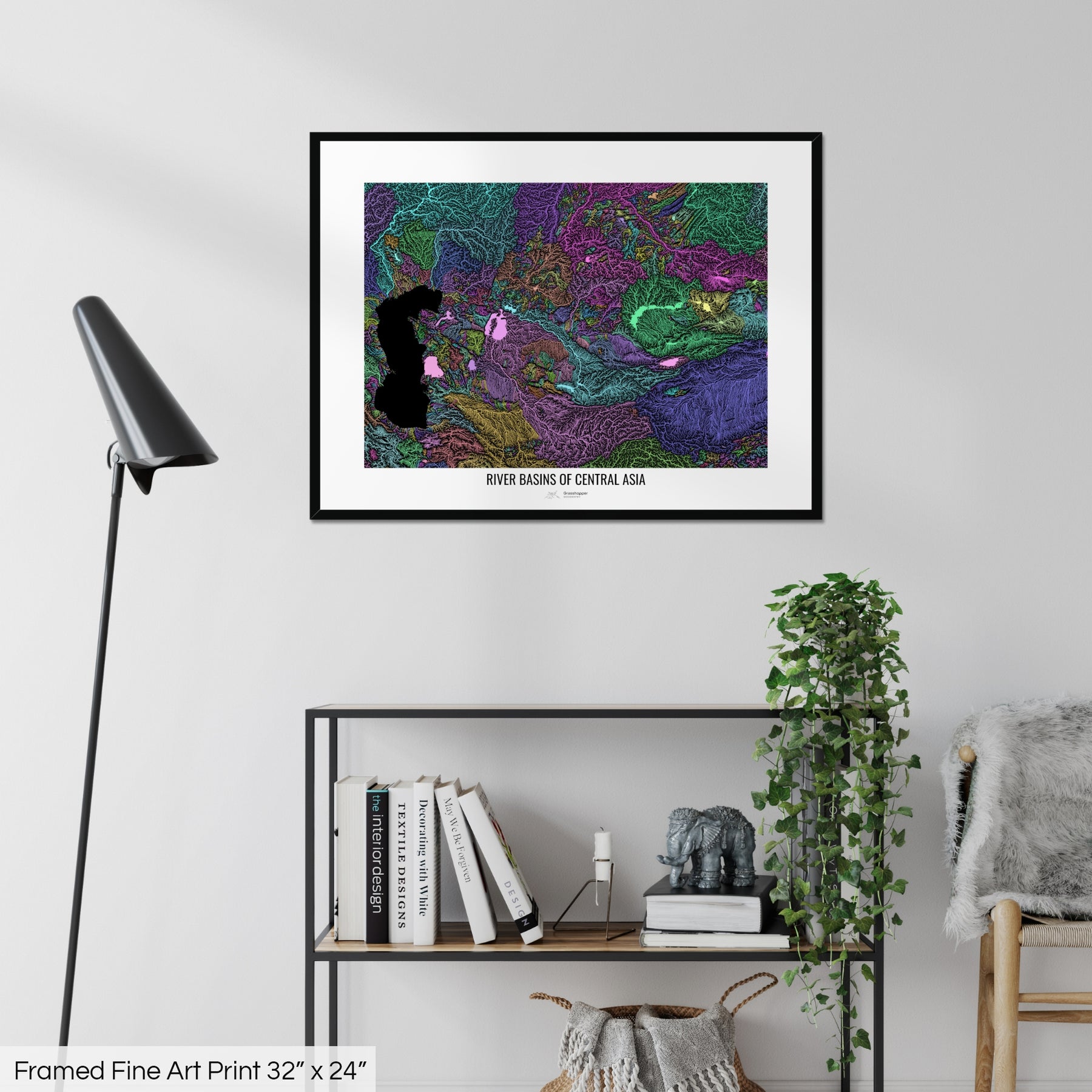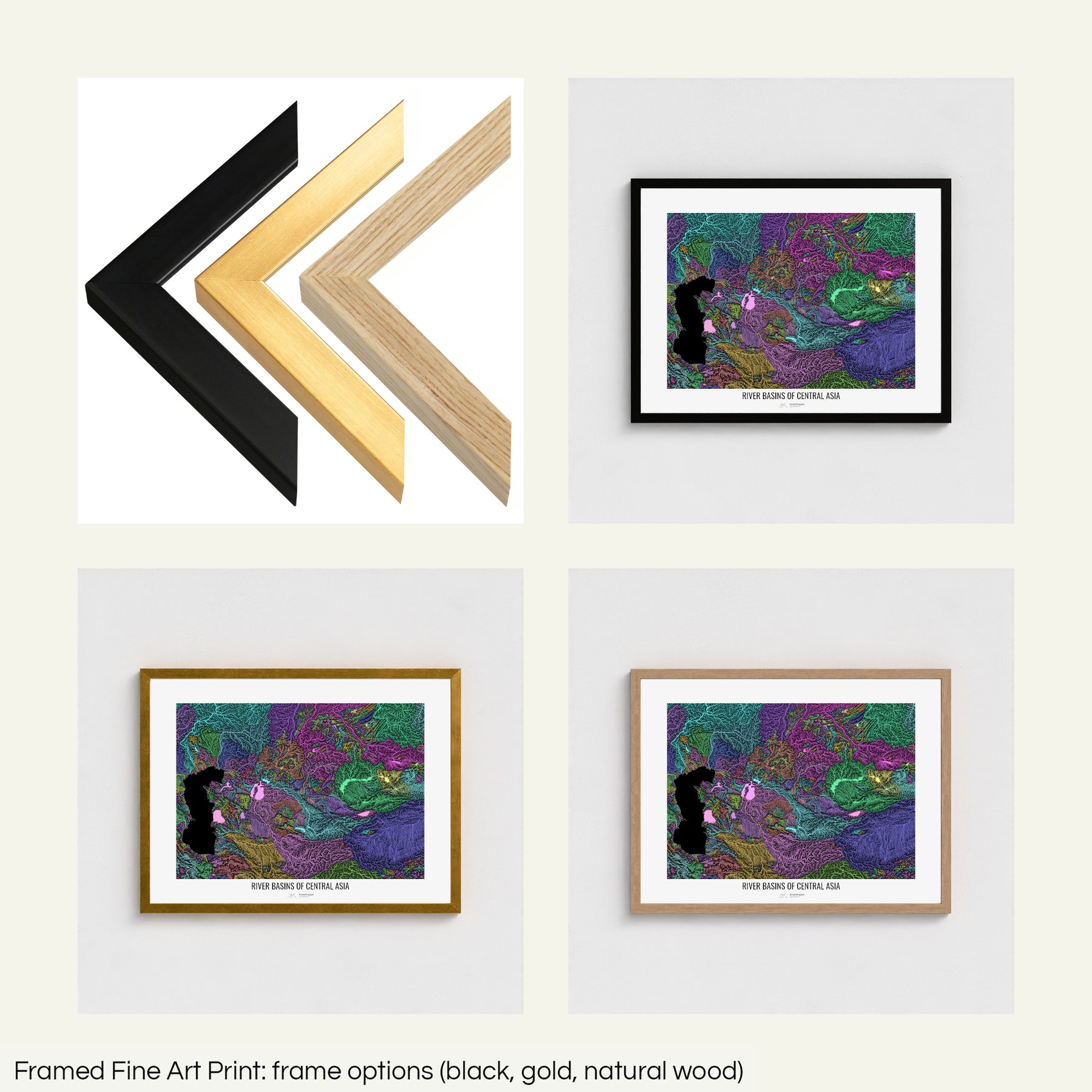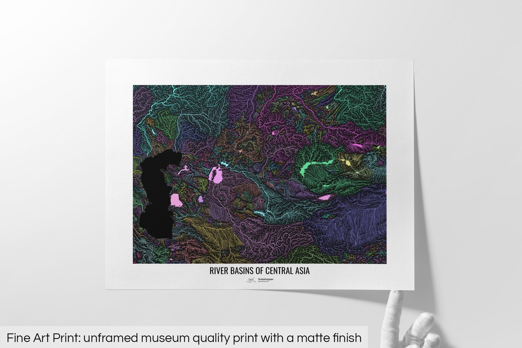 Central Asia - River basin map, pastel colours - Wall Art
