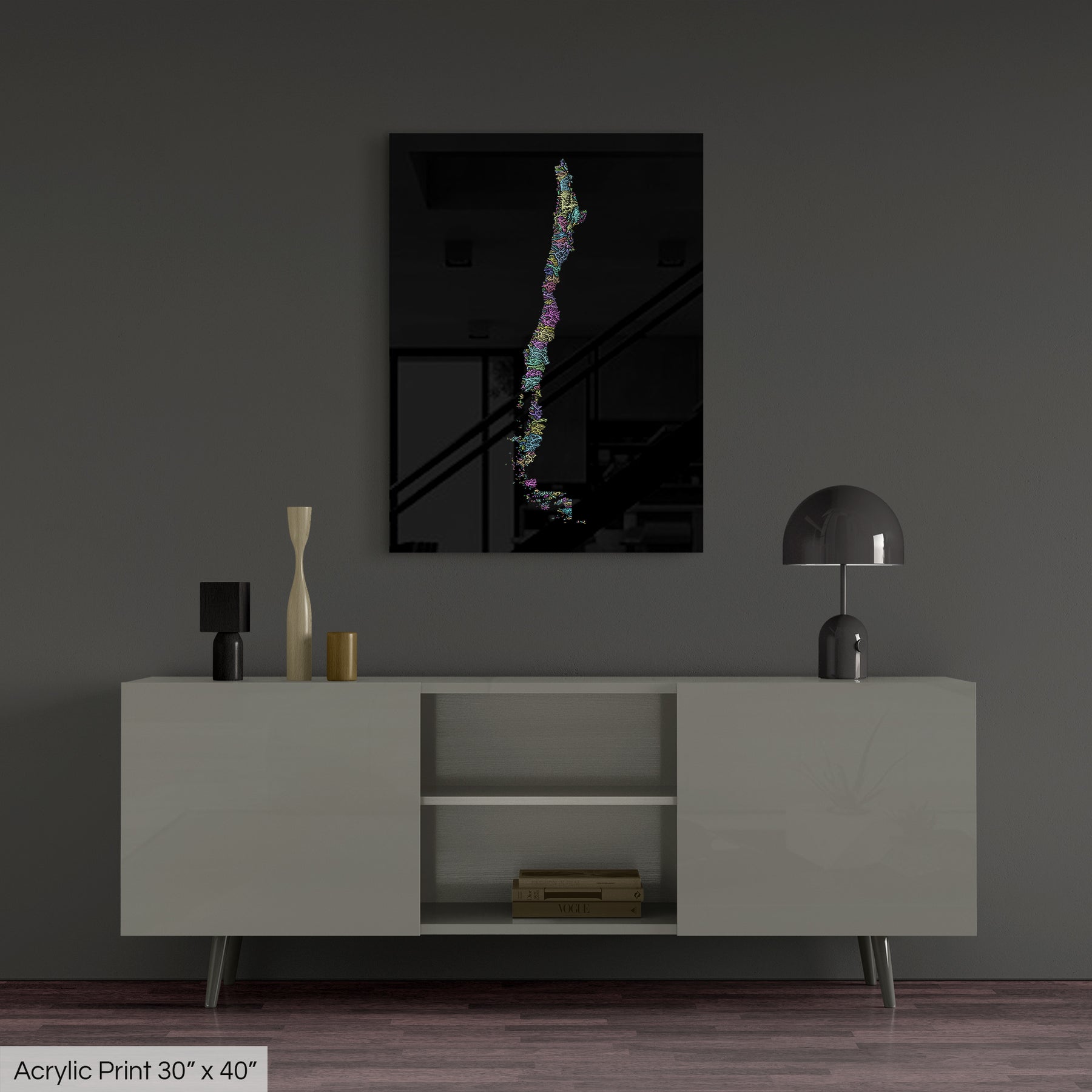 A frame free wall art option that creates a dramatic focal point for any wall. The 3D luminosity of the polished surface brings our maps to life with vibrant colors that will meet the highest expectations.