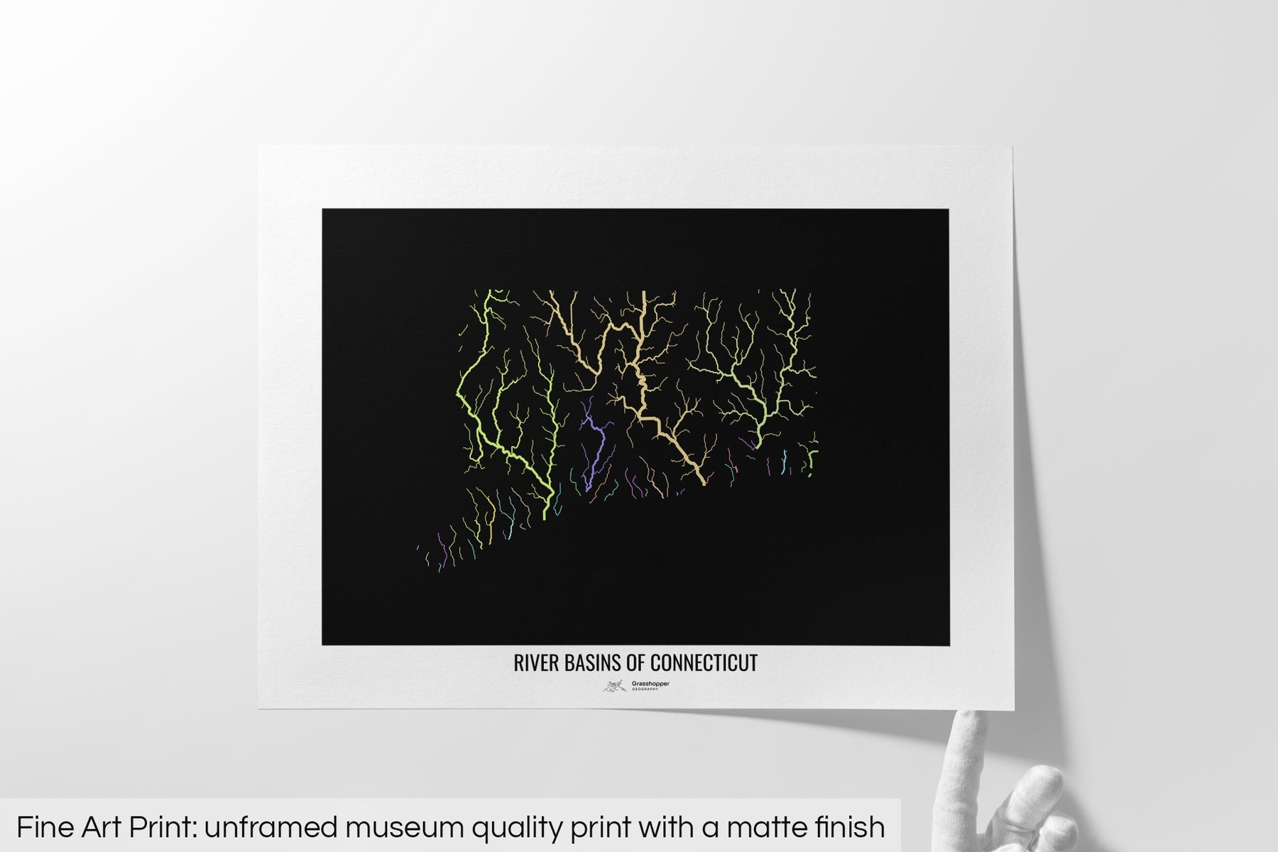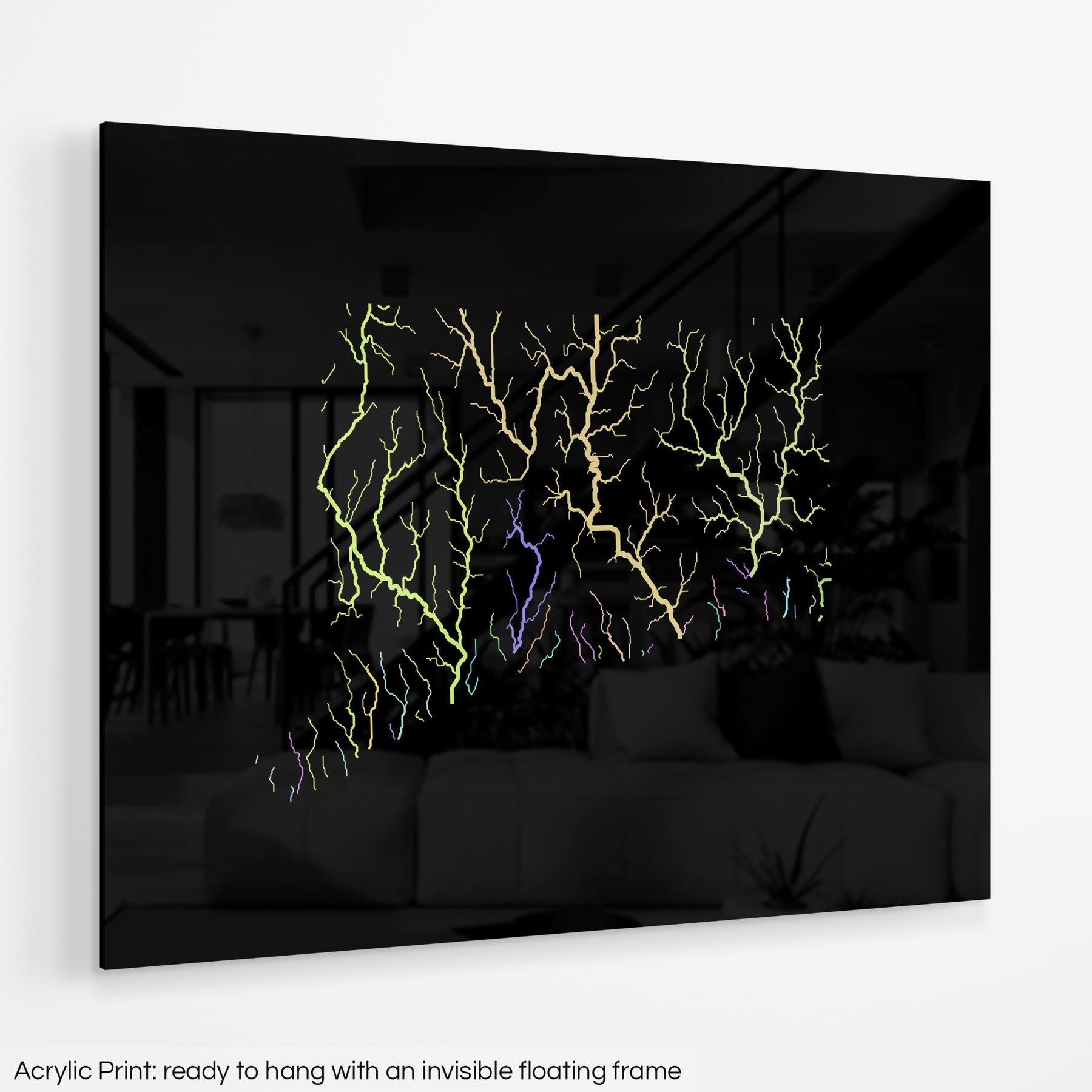 High resolution river basin map, showing each catchment area in a different colour. Thanks to its soft pastel tones the map fits well into most interiors.
