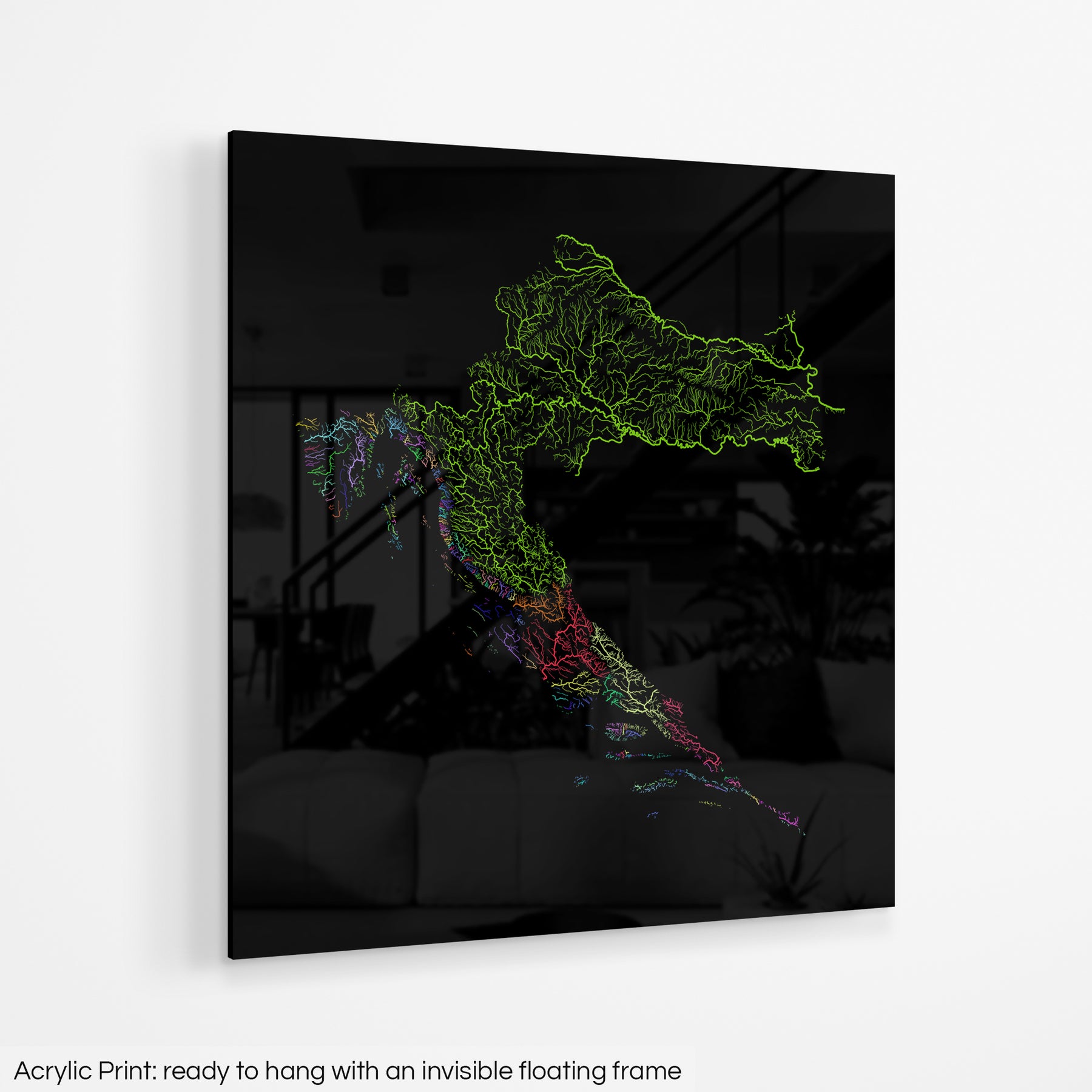 The fine art Giclée print is hand mounted onto a 10mm thick, premium polished, high-gloss acrylic glass that results in a vibrant finish. The transparency of the acrylic enhances the colours and details of the artwork, creating a stunning visual effect that will make a bold statement in any space.