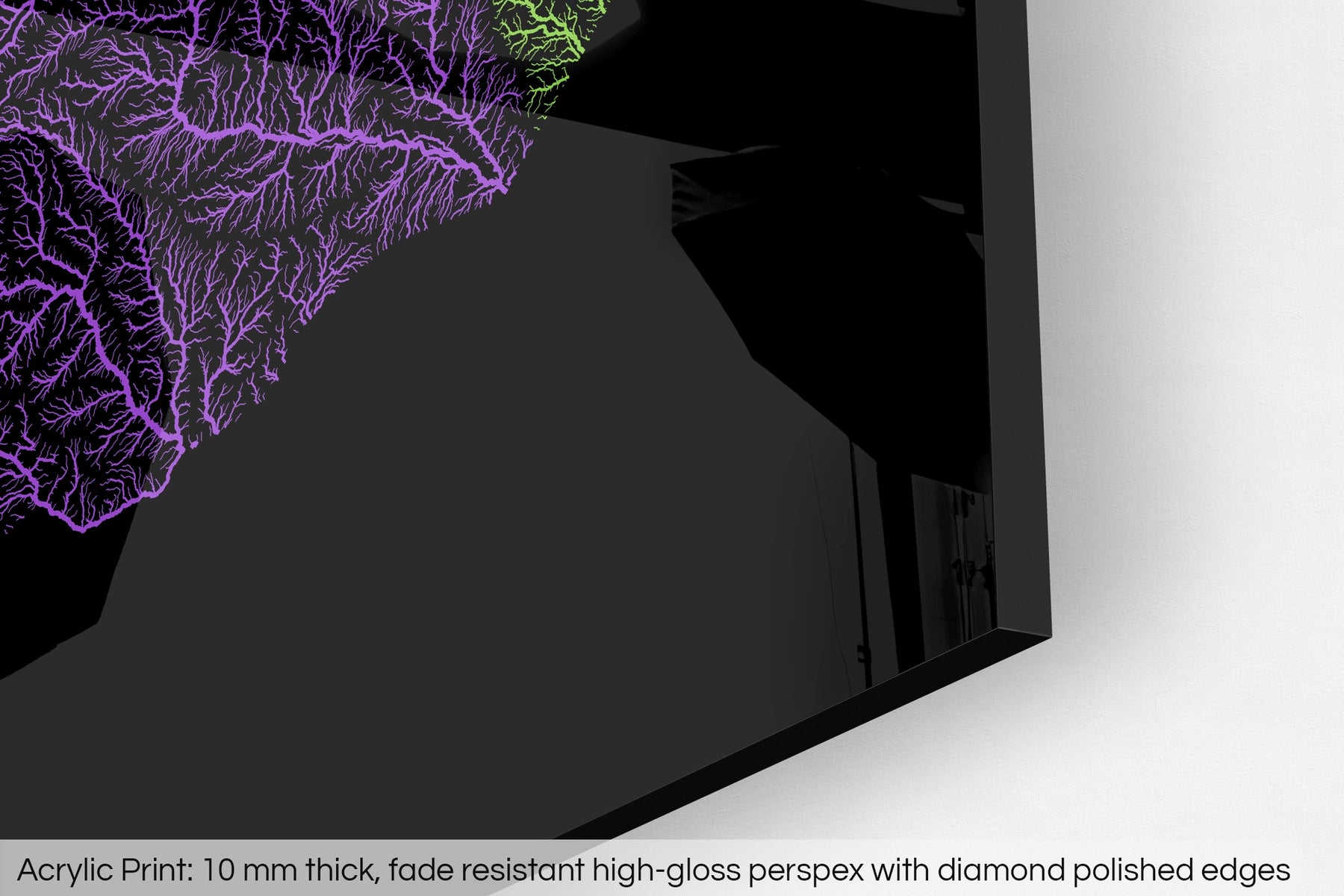A fine art Giclée print is hand mounted onto 10mm thick high-gloss acrylic perspex that will protect your map from harmful UV light, keeping colours fresh and vivid for years to come.