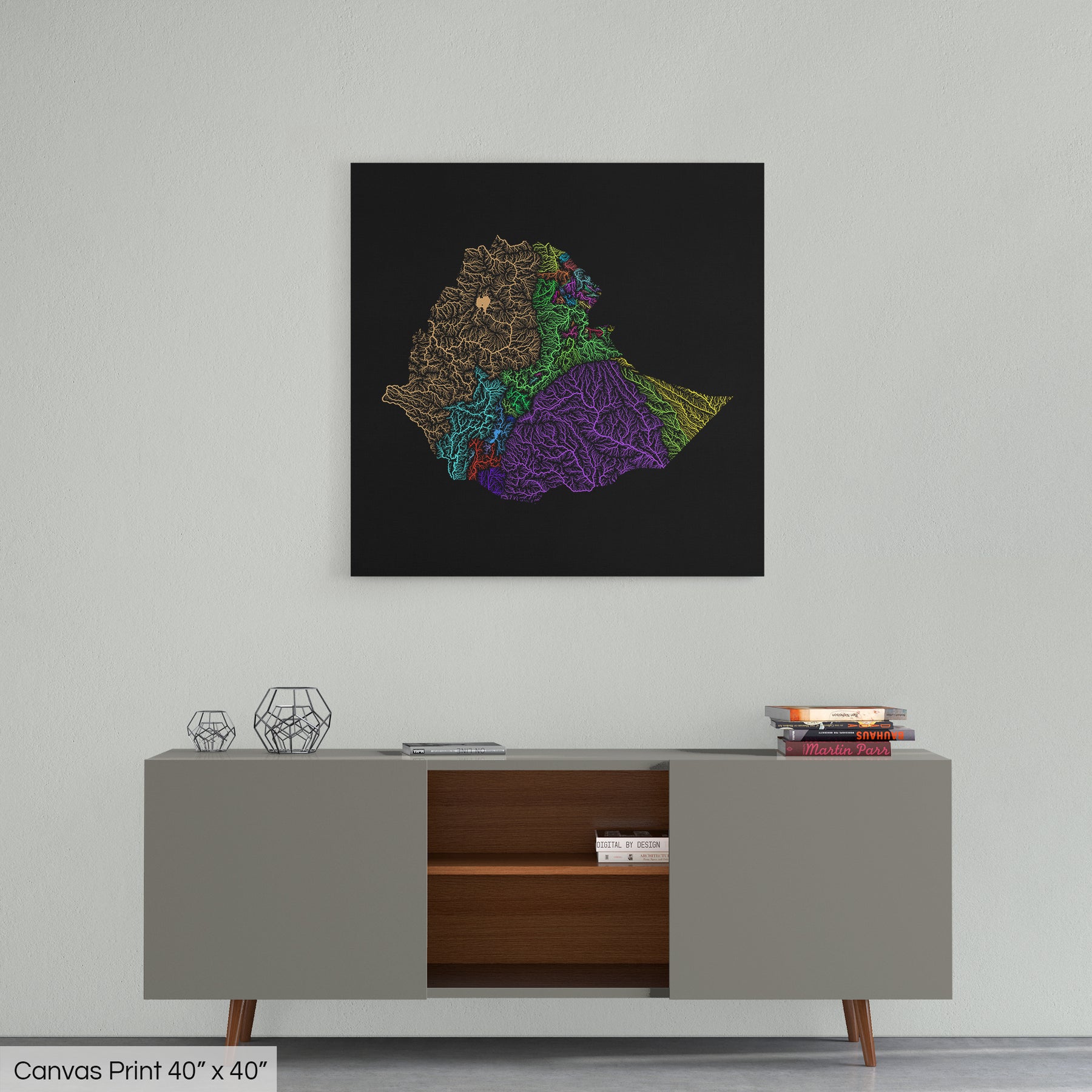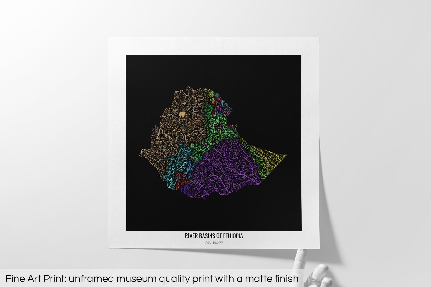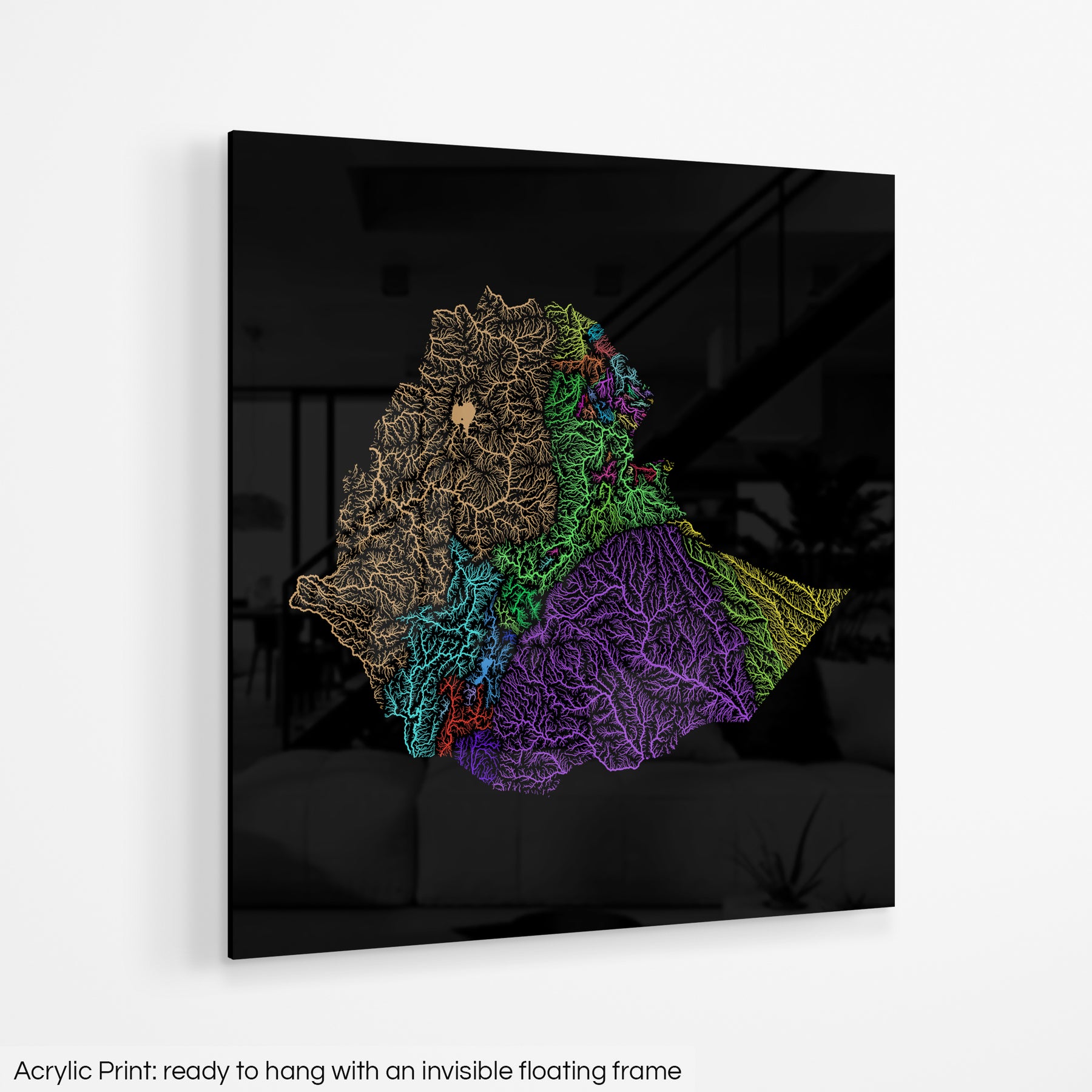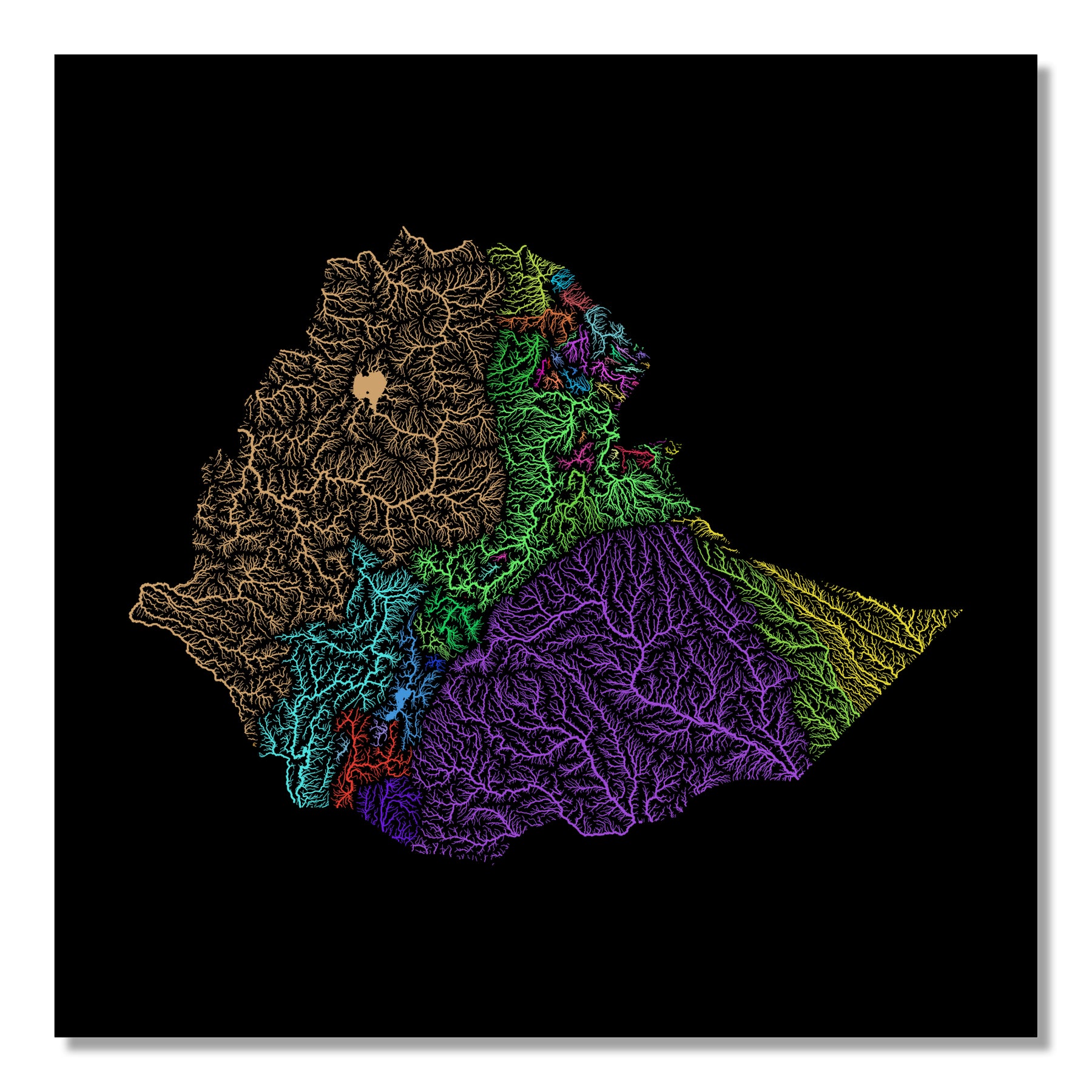 Ethiopia - River basin map, rainbow colours - Wall Art