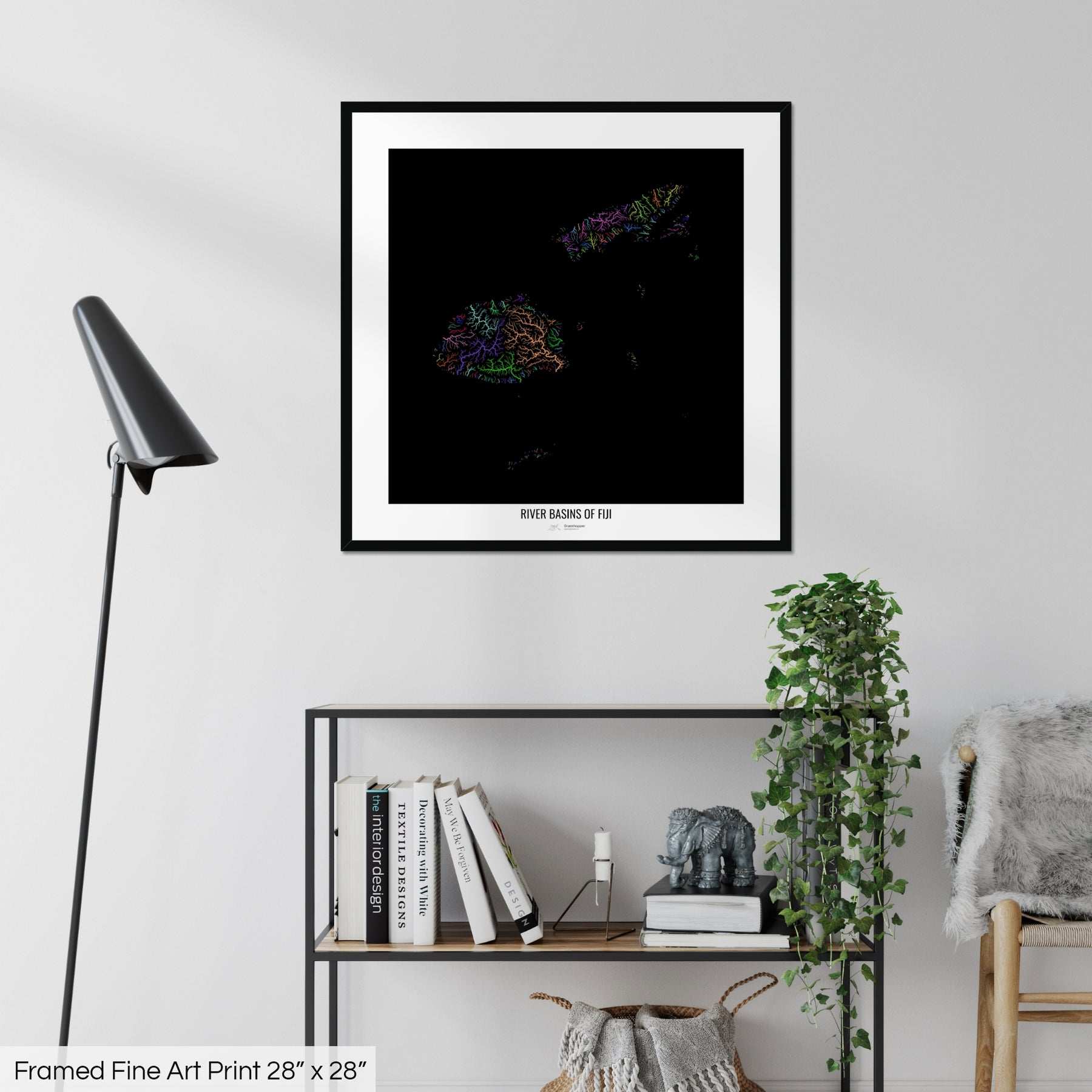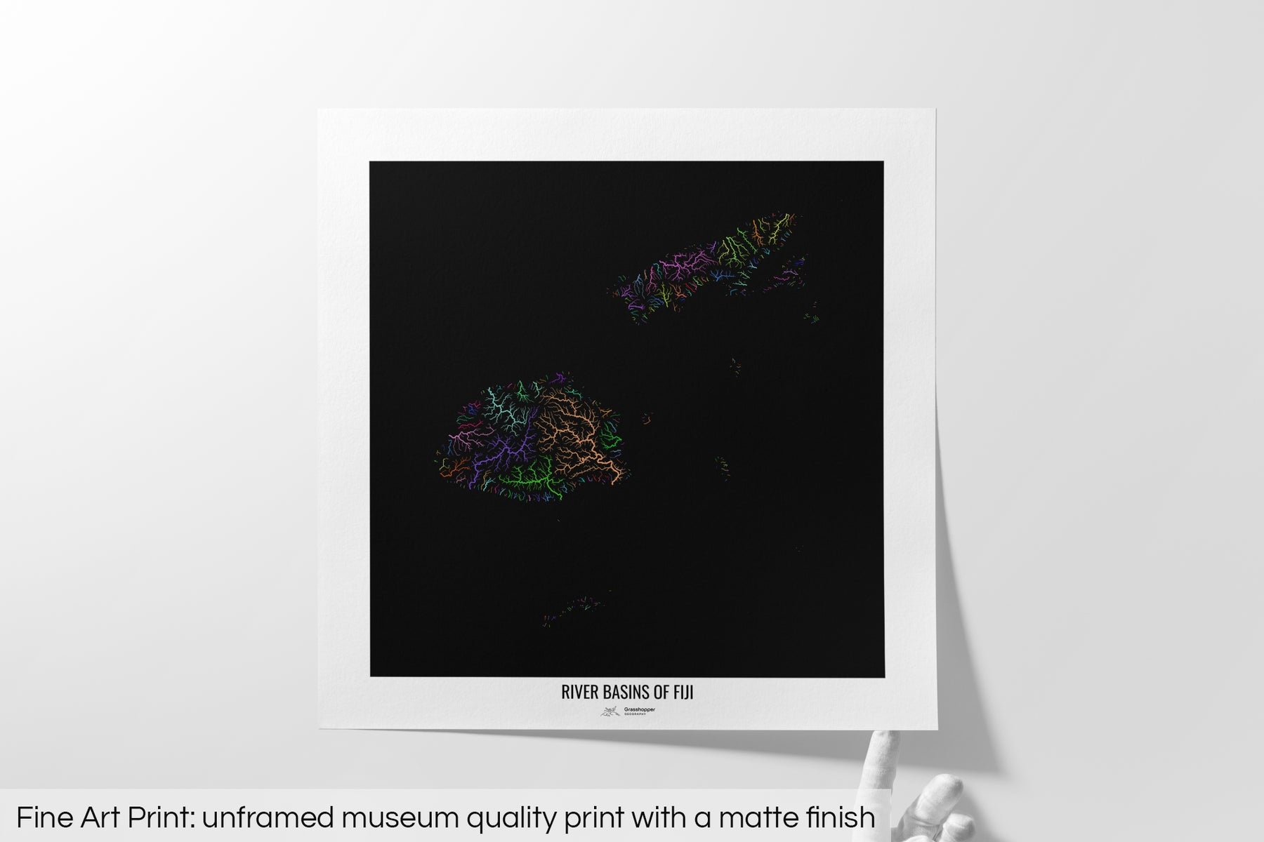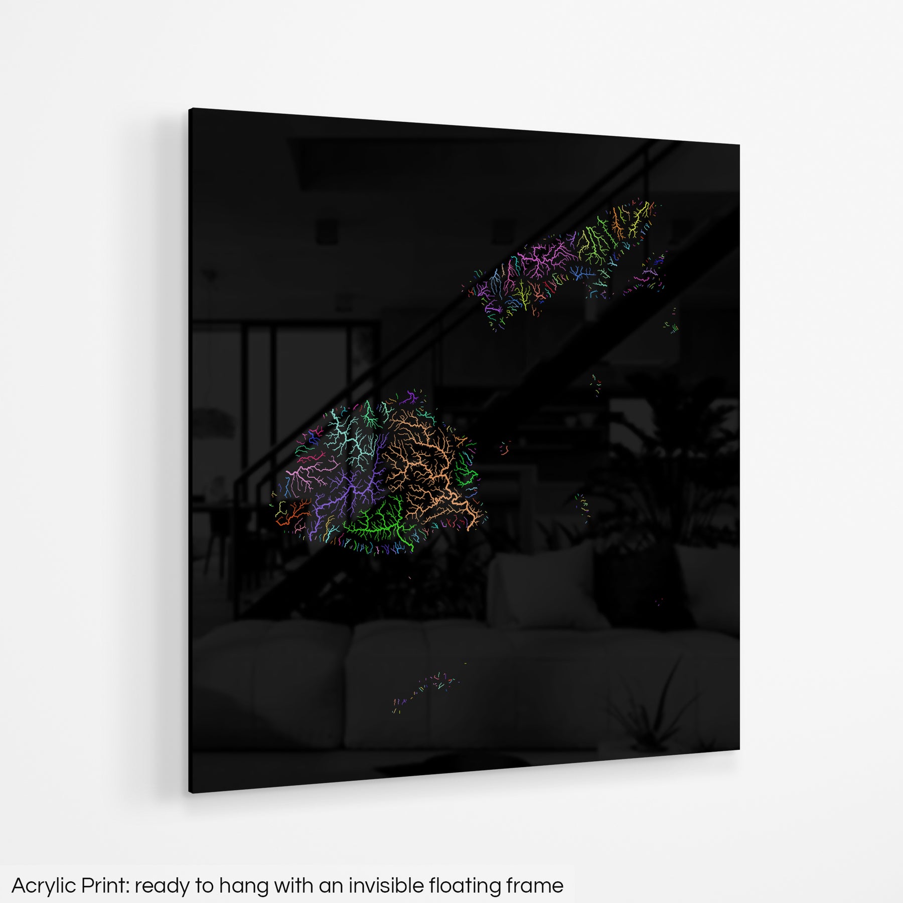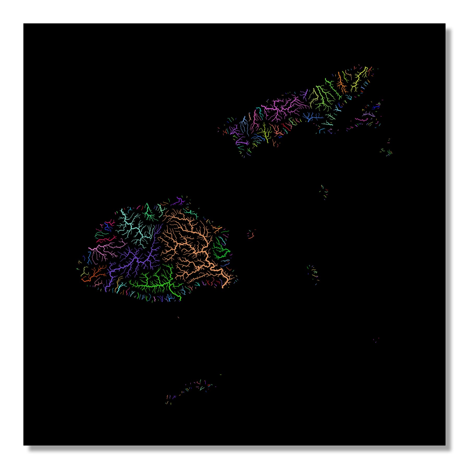 This high-resolution river basin map shows each catchment area in a different colour. Its vibrant colour scheme makes this map a lively addition to any space.