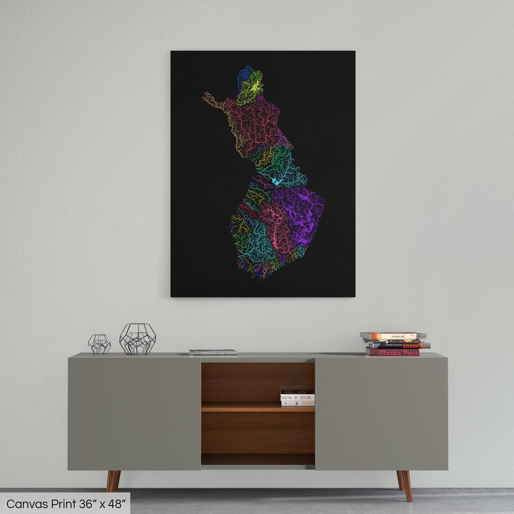 This high-resolution river basin map shows each catchment area in a different colour. Its vibrant colour scheme makes this map a lively addition to any space.