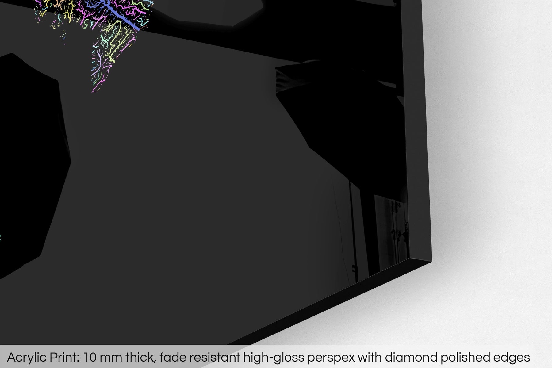 The fine art Giclée print is hand mounted onto a 10mm thick, premium polished, high-gloss acrylic glass that results in a vibrant finish. The transparency of the acrylic enhances the colours and details of the artwork, creating a stunning visual effect that will make a bold statement in any space.
