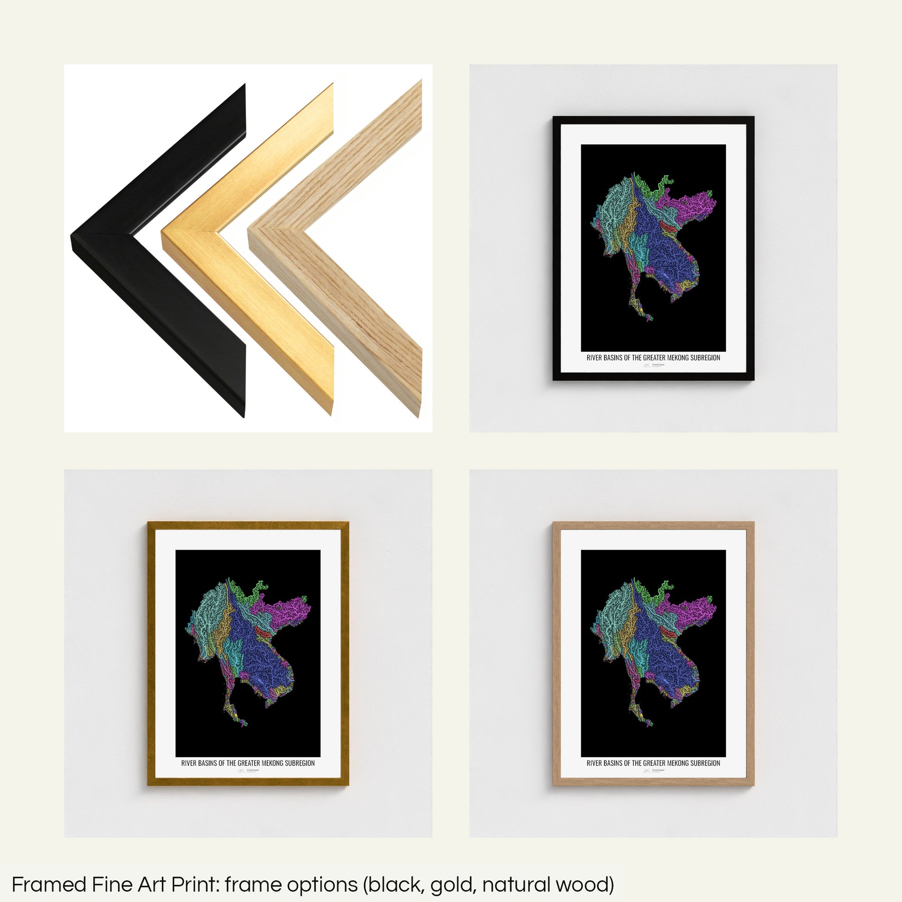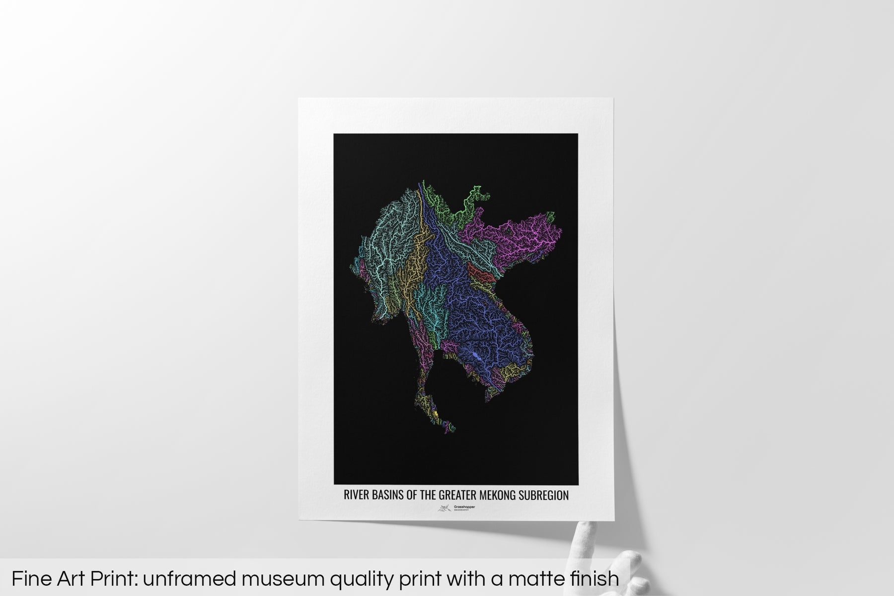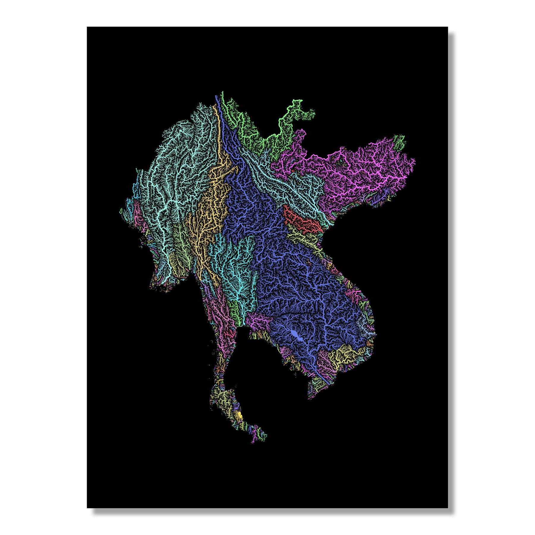 Greater Mekong Subregion - River basin map, pastel colours - Wall Art