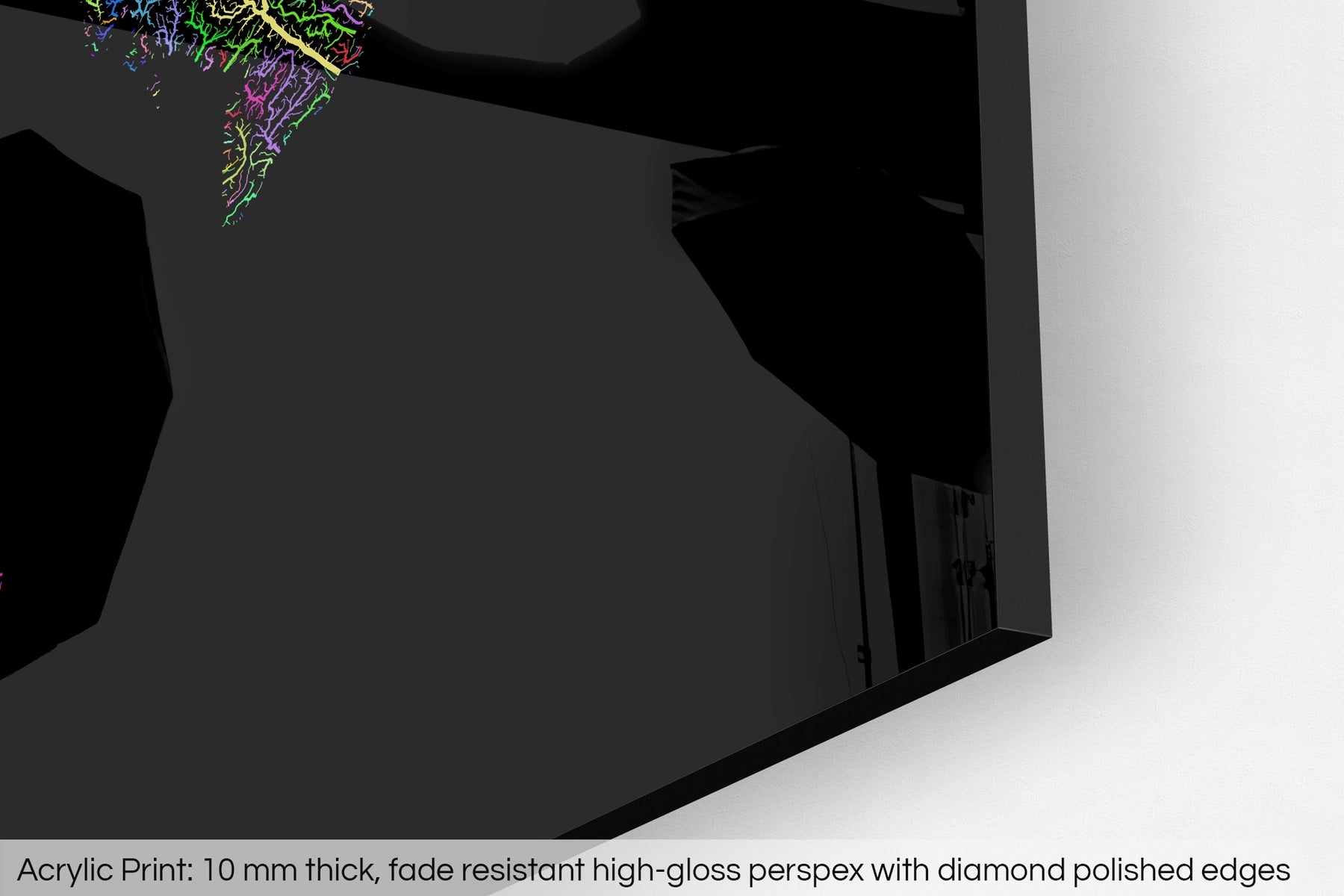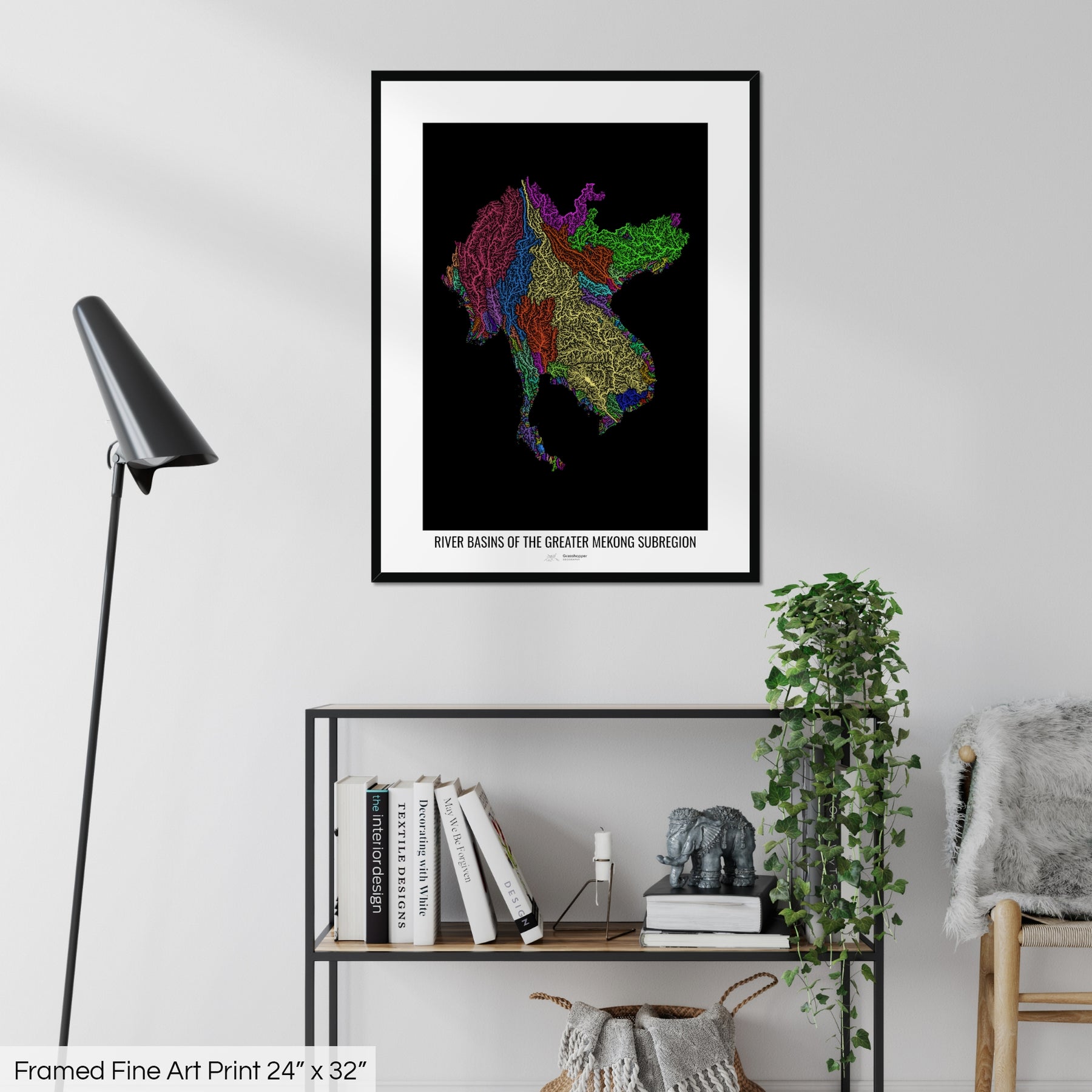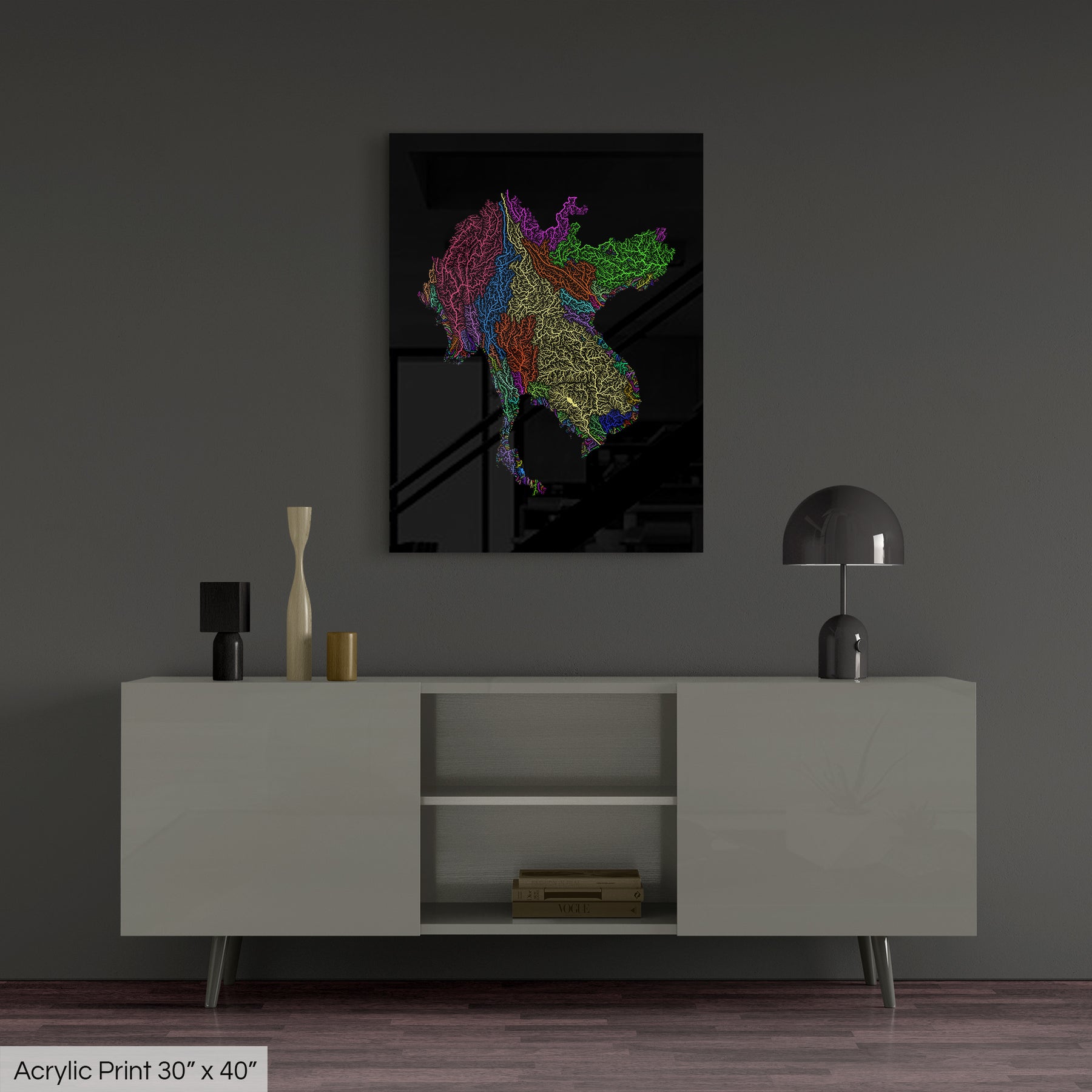 Greater Mekong Subregion - River basin map, rainbow colours - Wall Art