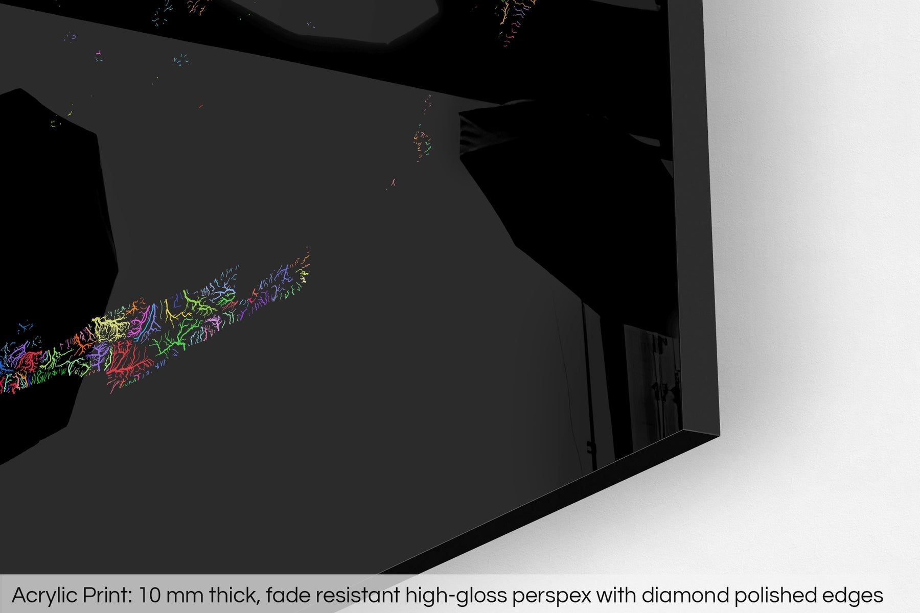 A fine art Giclée print is hand mounted onto 10mm thick high-gloss acrylic perspex that will protect your map from harmful UV light, keeping colours fresh and vivid for years to come.