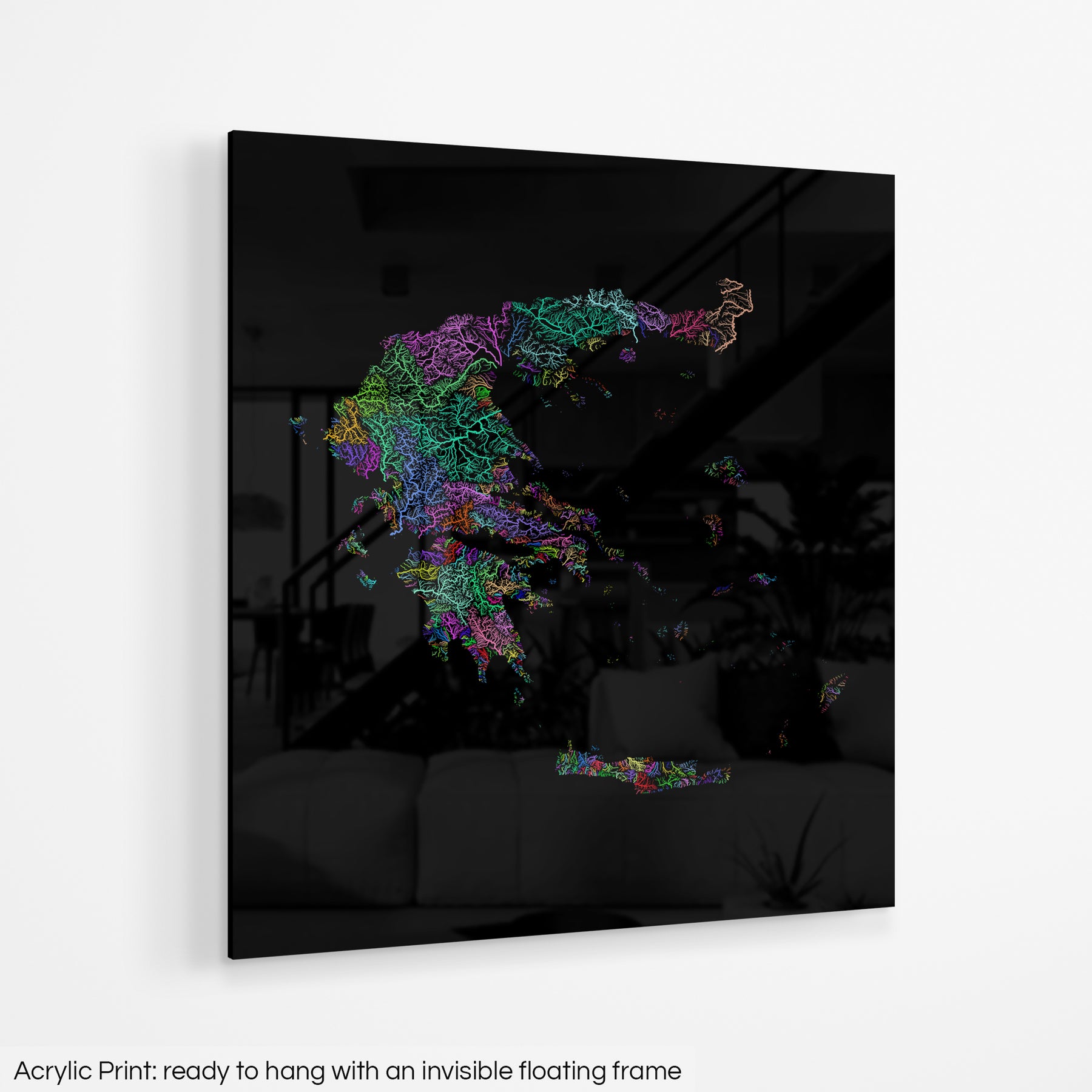 Greece - River basin map, rainbow colours - Wall Art