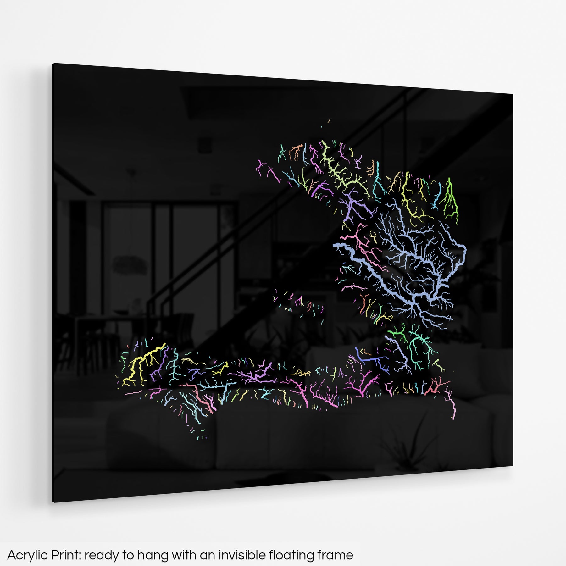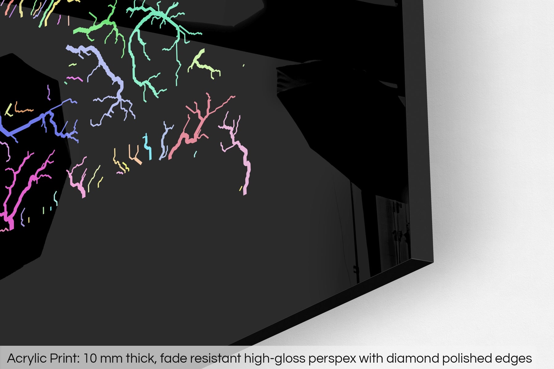 The fine art Giclée print is hand mounted onto a 10mm thick, premium polished, high-gloss acrylic glass that results in a vibrant finish. The transparency of the acrylic enhances the colours and details of the artwork, creating a stunning visual effect that will make a bold statement in any space.