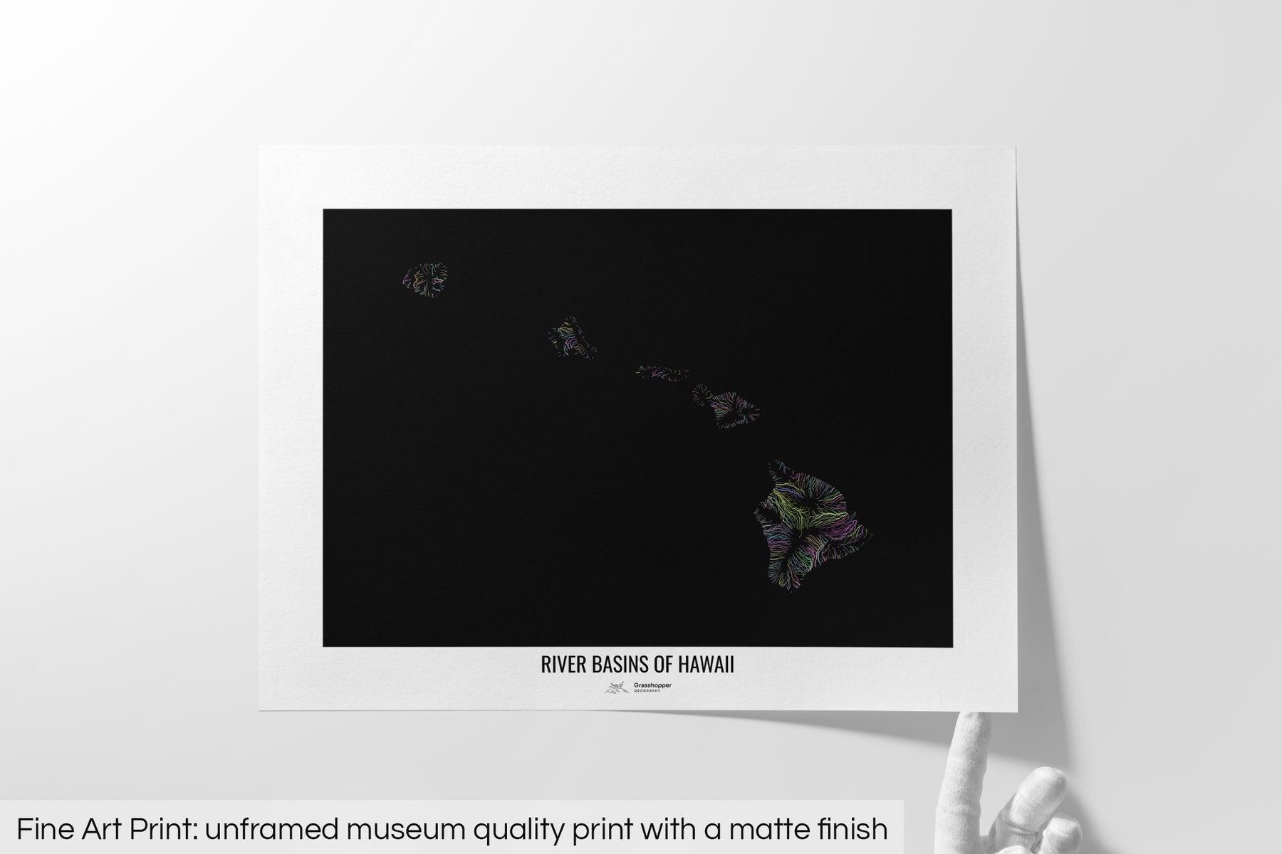 High resolution river basin map, showing each catchment area in a different colour. Thanks to its soft pastel tones the map fits well into most interiors.