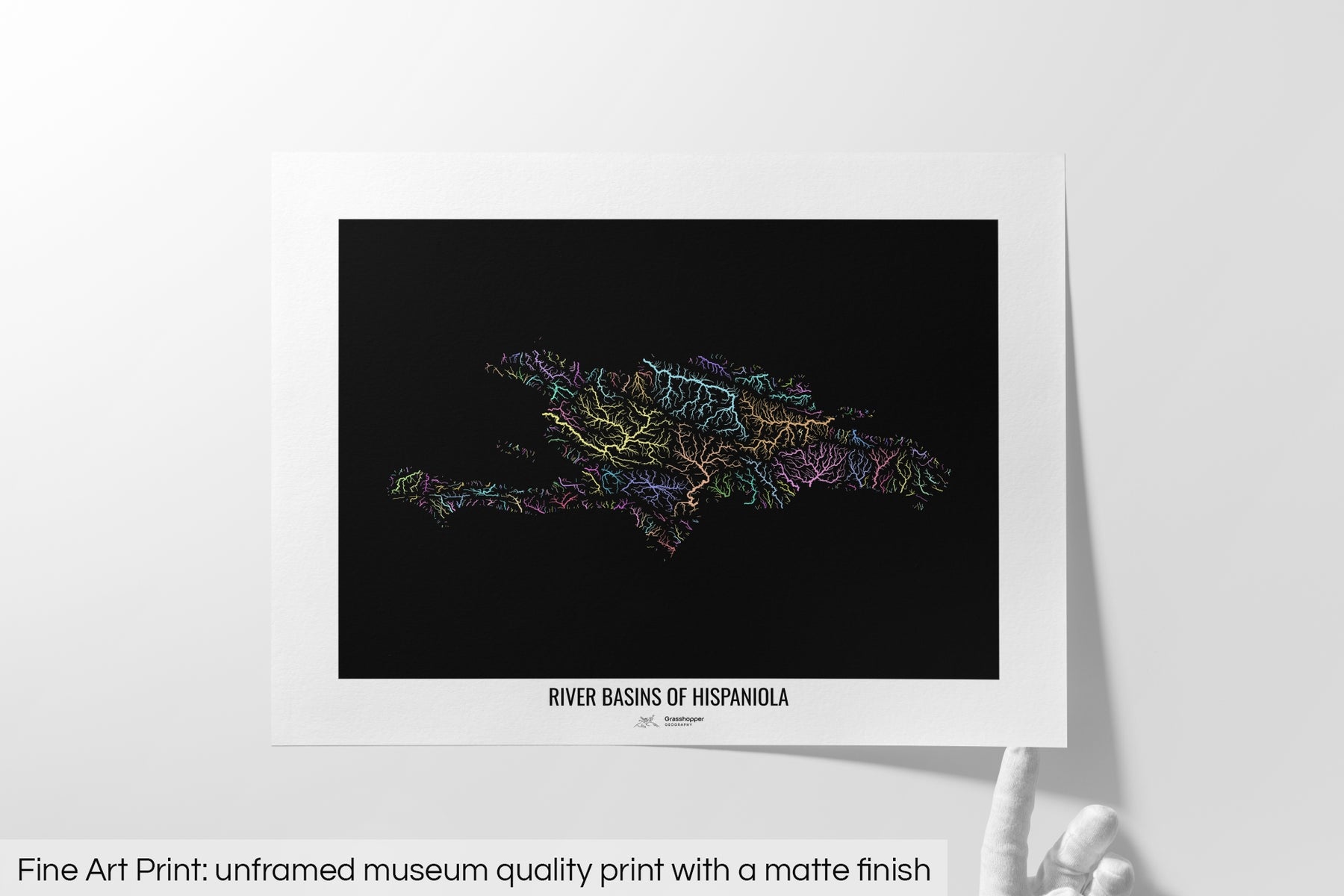 High resolution river basin map, showing each catchment area in a different colour. Thanks to its soft pastel tones the map fits well into most interiors.