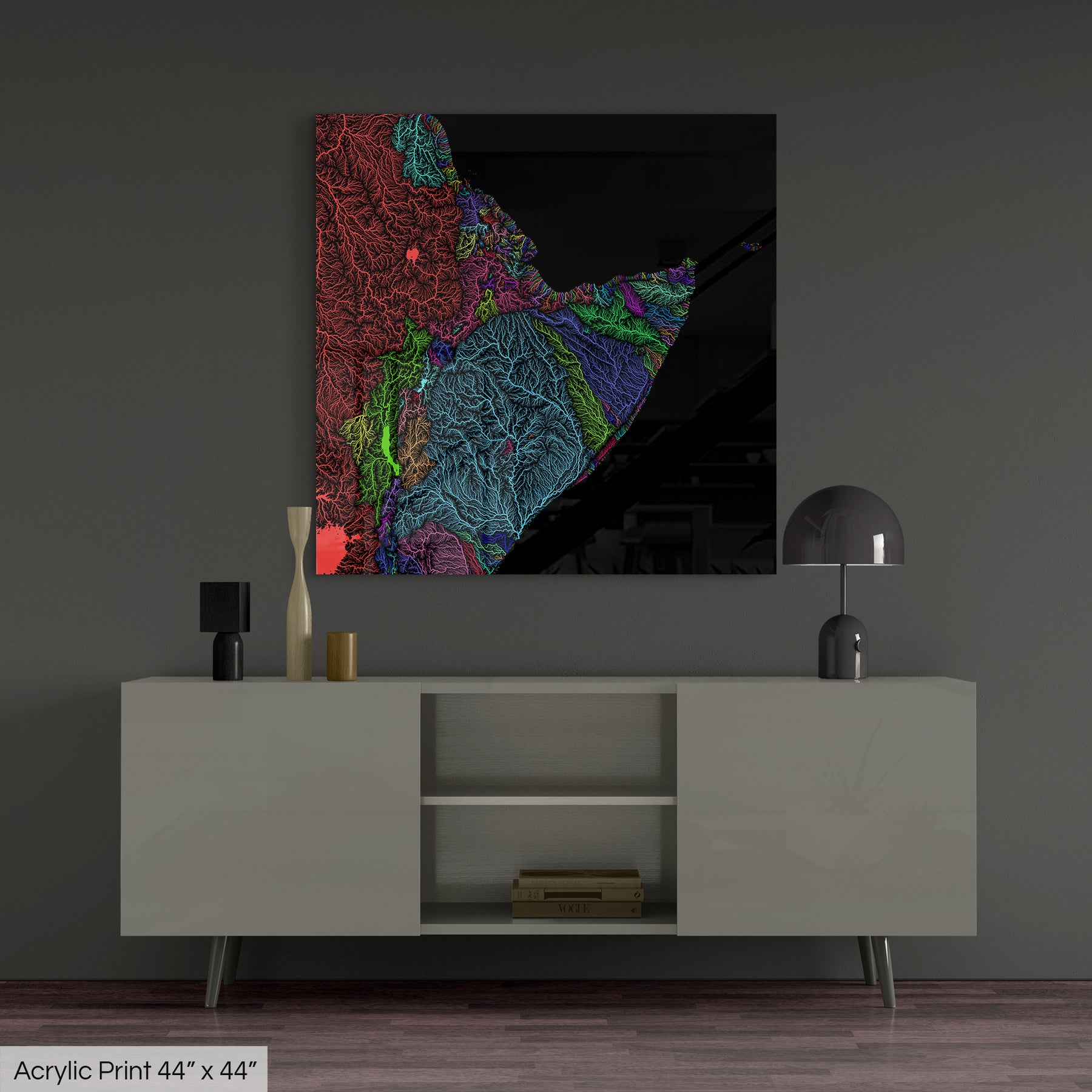 Horn of Africa - River basin map, rainbow colours - Wall Art