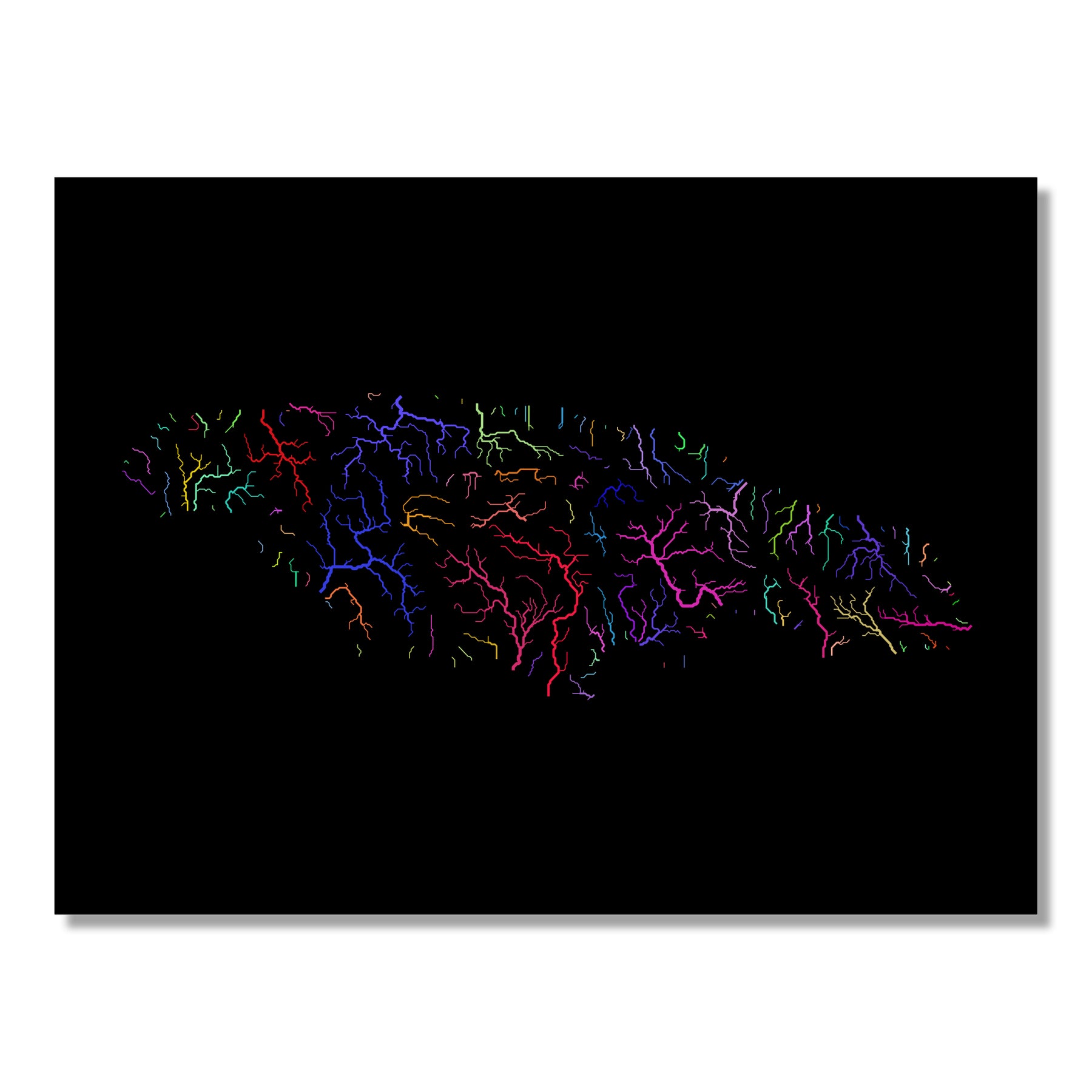 Jamaica - River basin map, rainbow colours - Wall Art