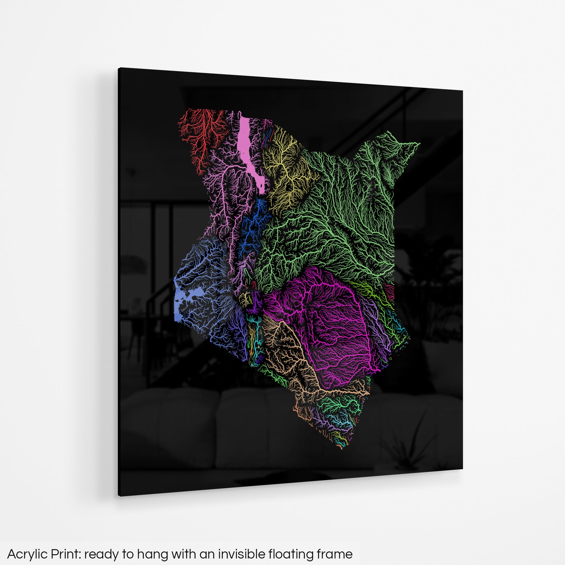 Kenya - River basin map, rainbow colours - Wall Art