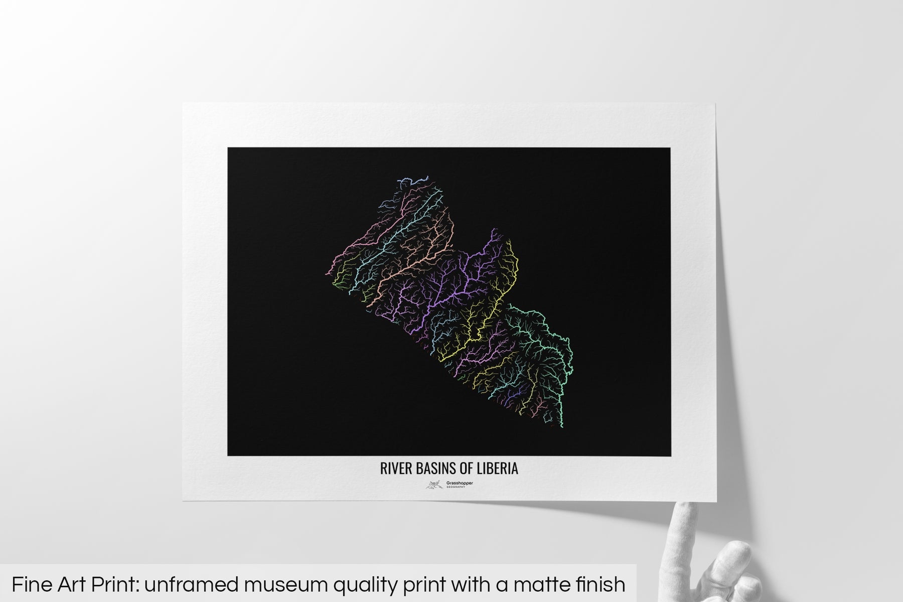 Liberia - River basin map, pastel colours - Wall Art