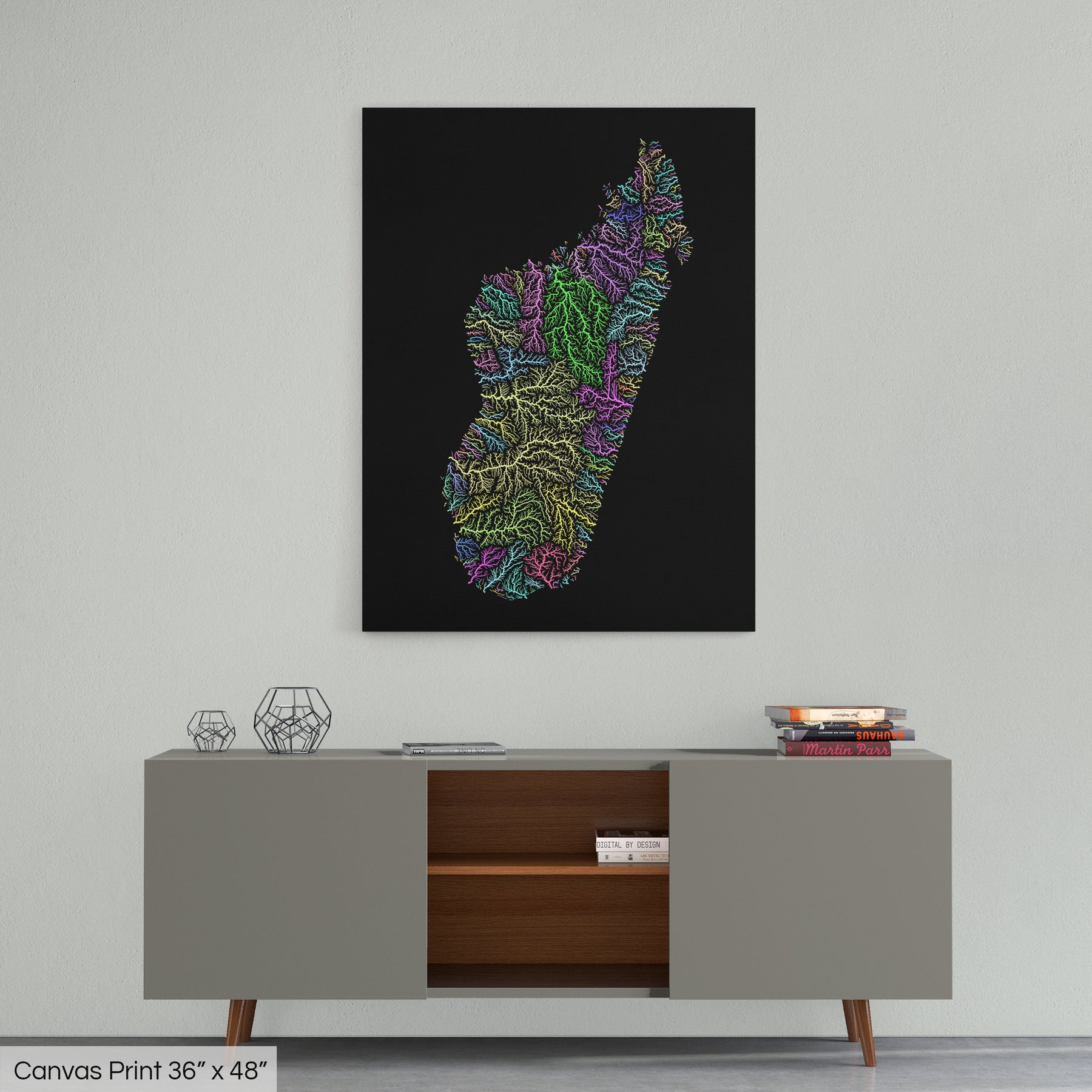 High resolution river basin map, showing each catchment area in a different colour. Thanks to its soft pastel tones the map fits well into most interiors.