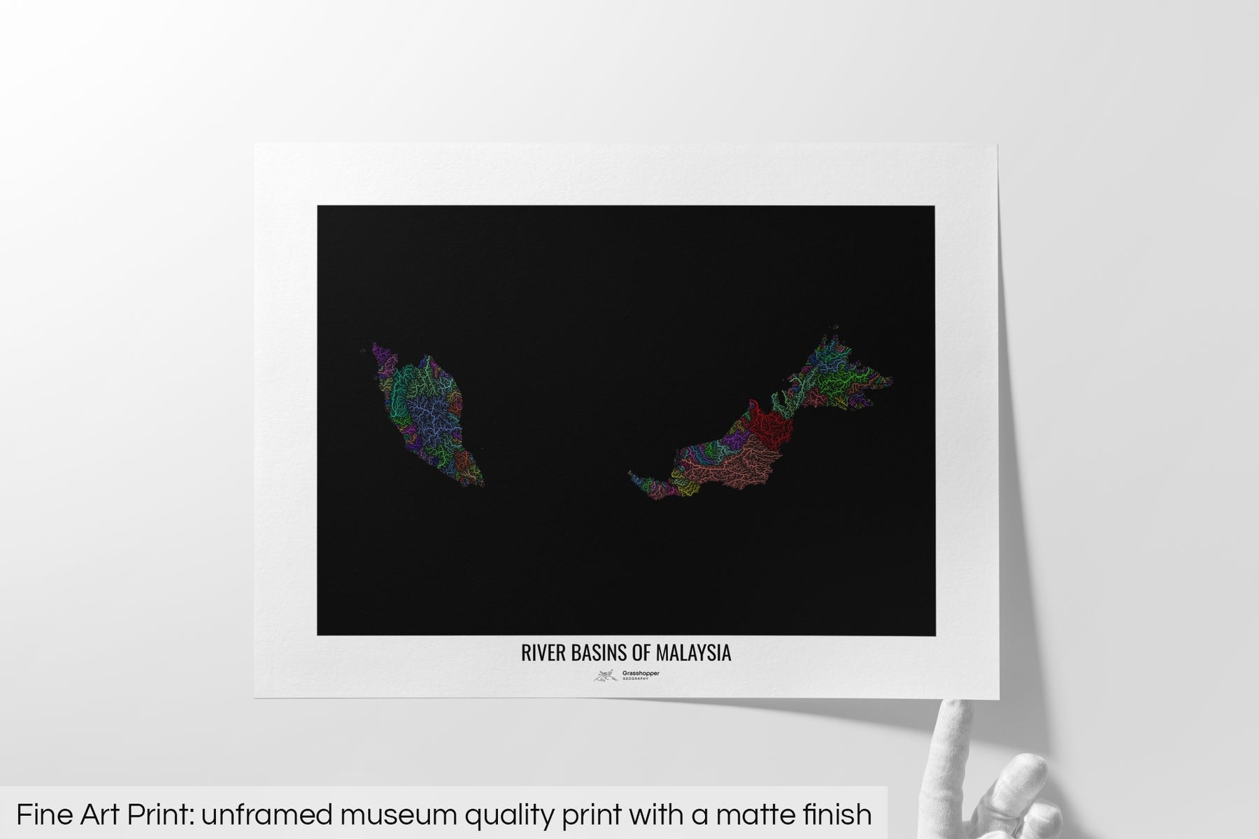 This high-resolution river basin map shows each catchment area in a different colour. Its vibrant colour scheme makes this map a lively addition to any space.
