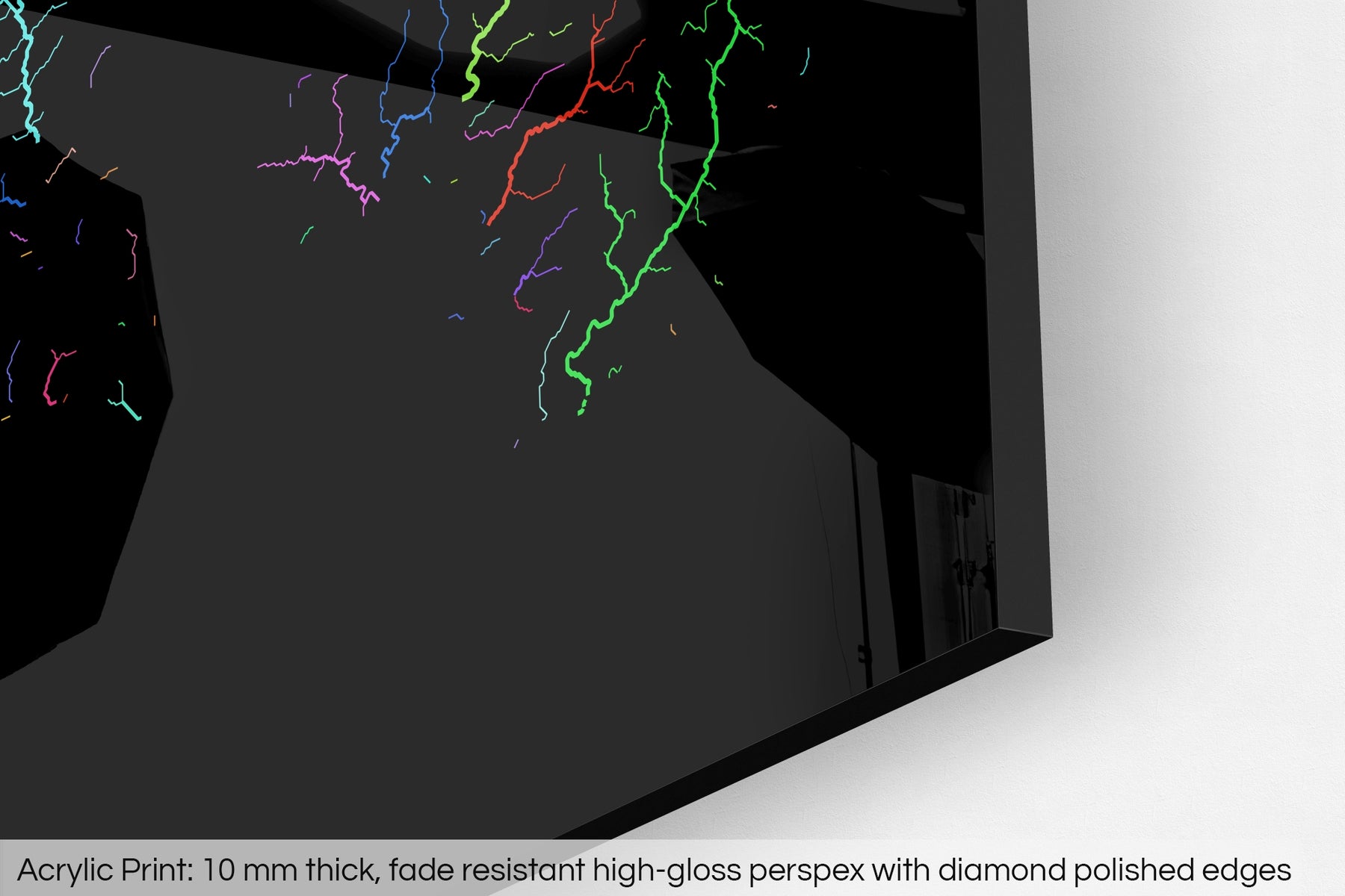 A fine art Giclée print is hand mounted onto 10mm thick high-gloss acrylic perspex that will protect your map from harmful UV light, keeping colours fresh and vivid for years to come.