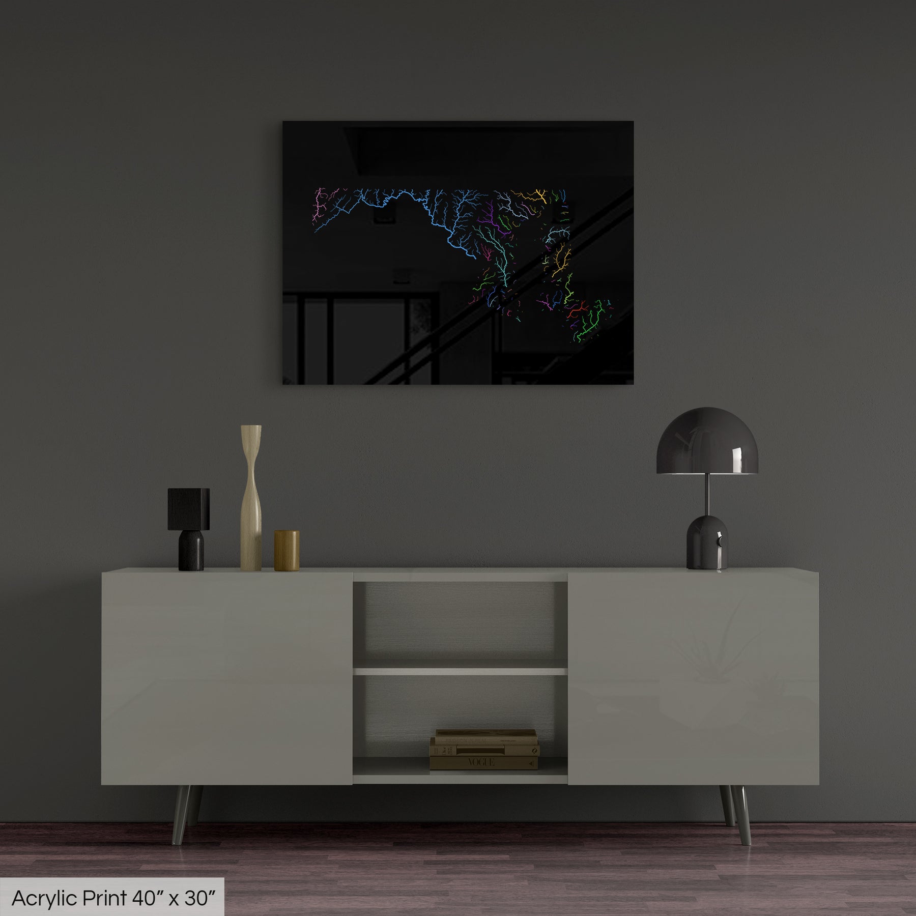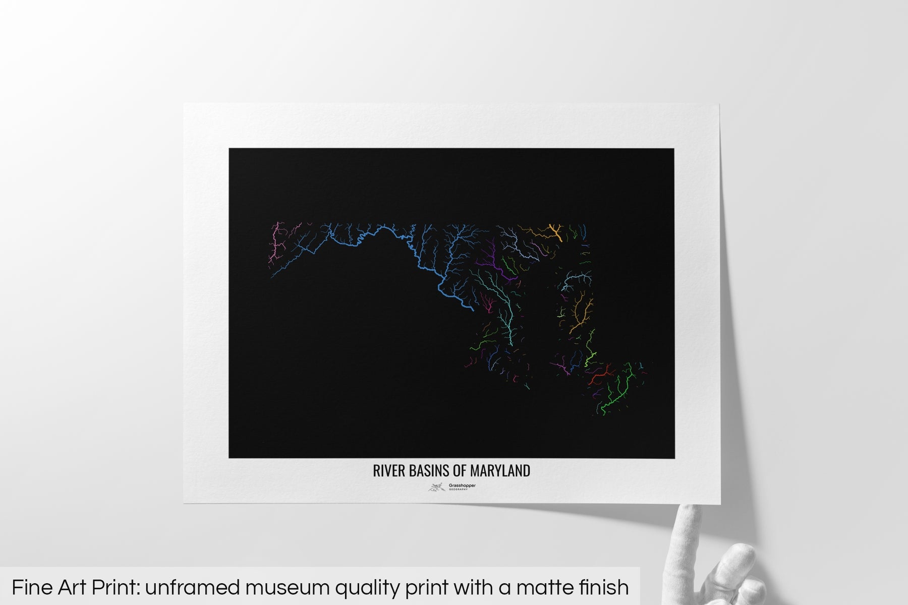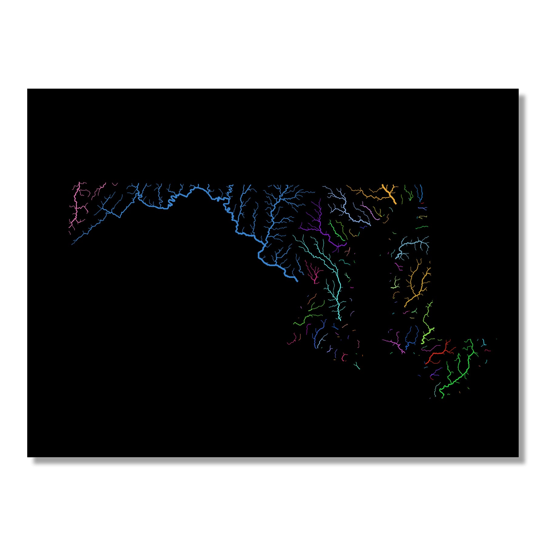 Maryland - River basin map, rainbow colours - Wall Art
