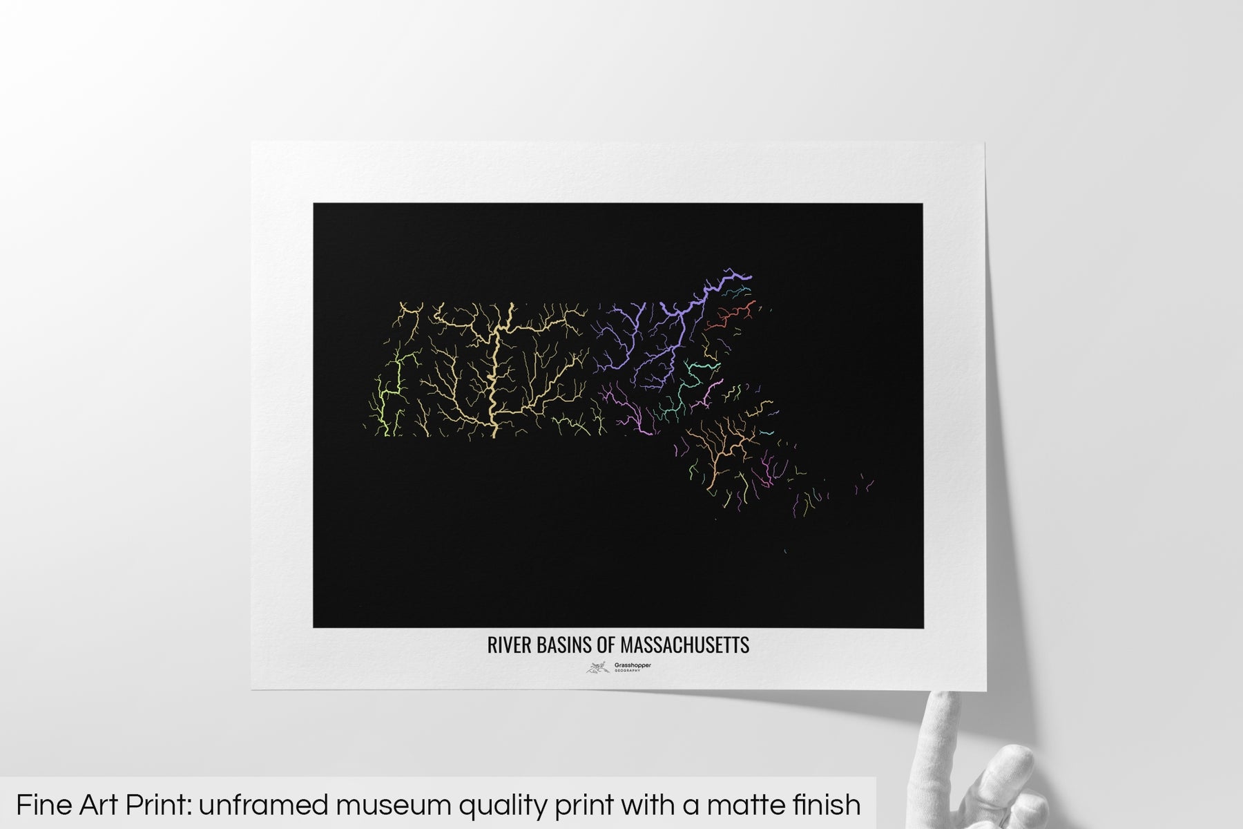 High resolution river basin map, showing each catchment area in a different colour. Thanks to its soft pastel tones the map fits well into most interiors.
