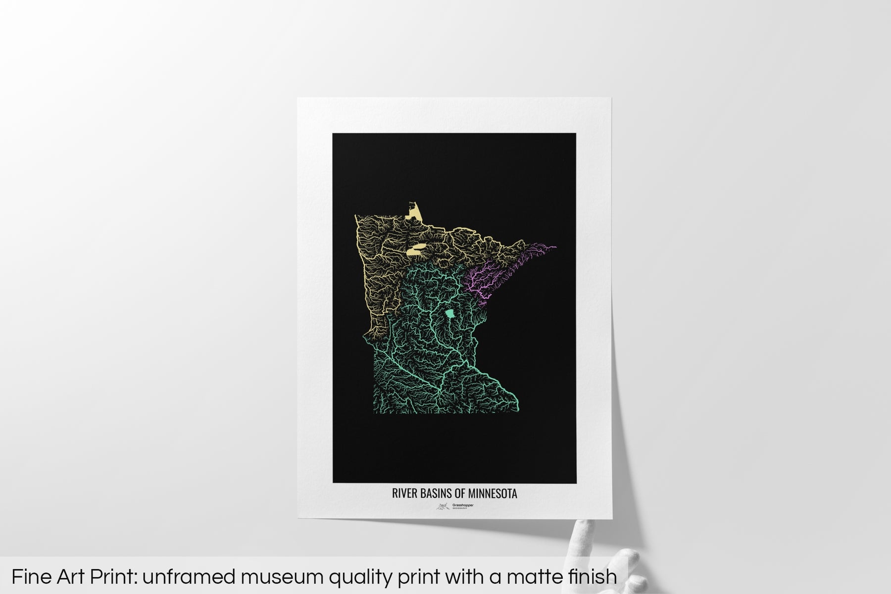 High resolution river basin map, showing each catchment area in a different colour. Thanks to its soft pastel tones the map fits well into most interiors.