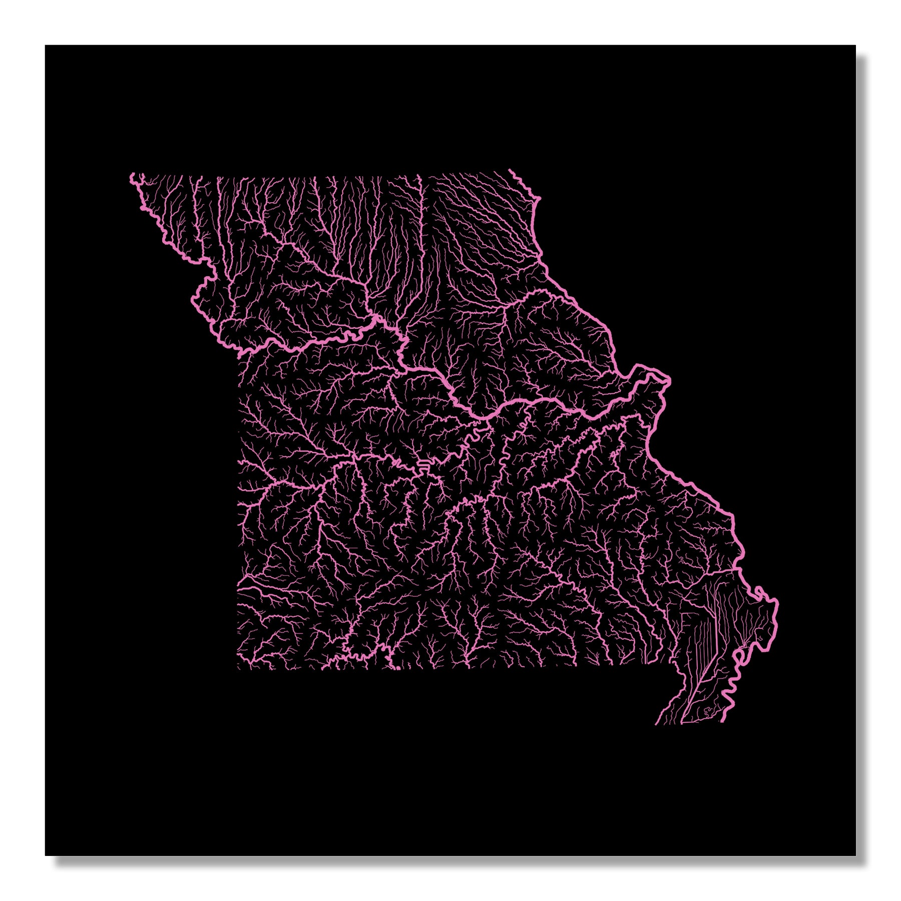 This high-resolution river basin map shows each catchment area in a different colour. Its vibrant colour scheme makes this map a lively addition to any space.