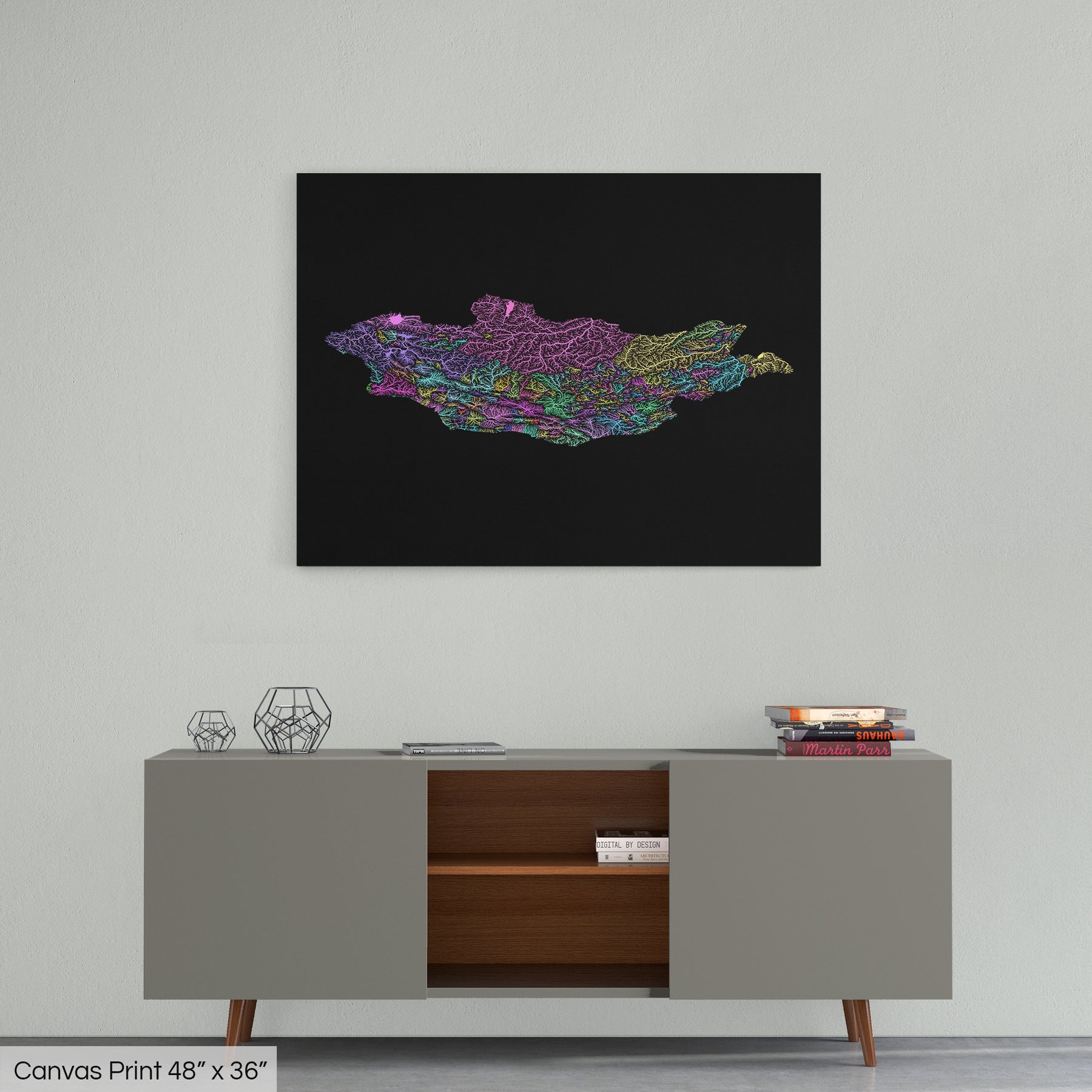Mongolia - River basin map, pastel colours - Wall Art