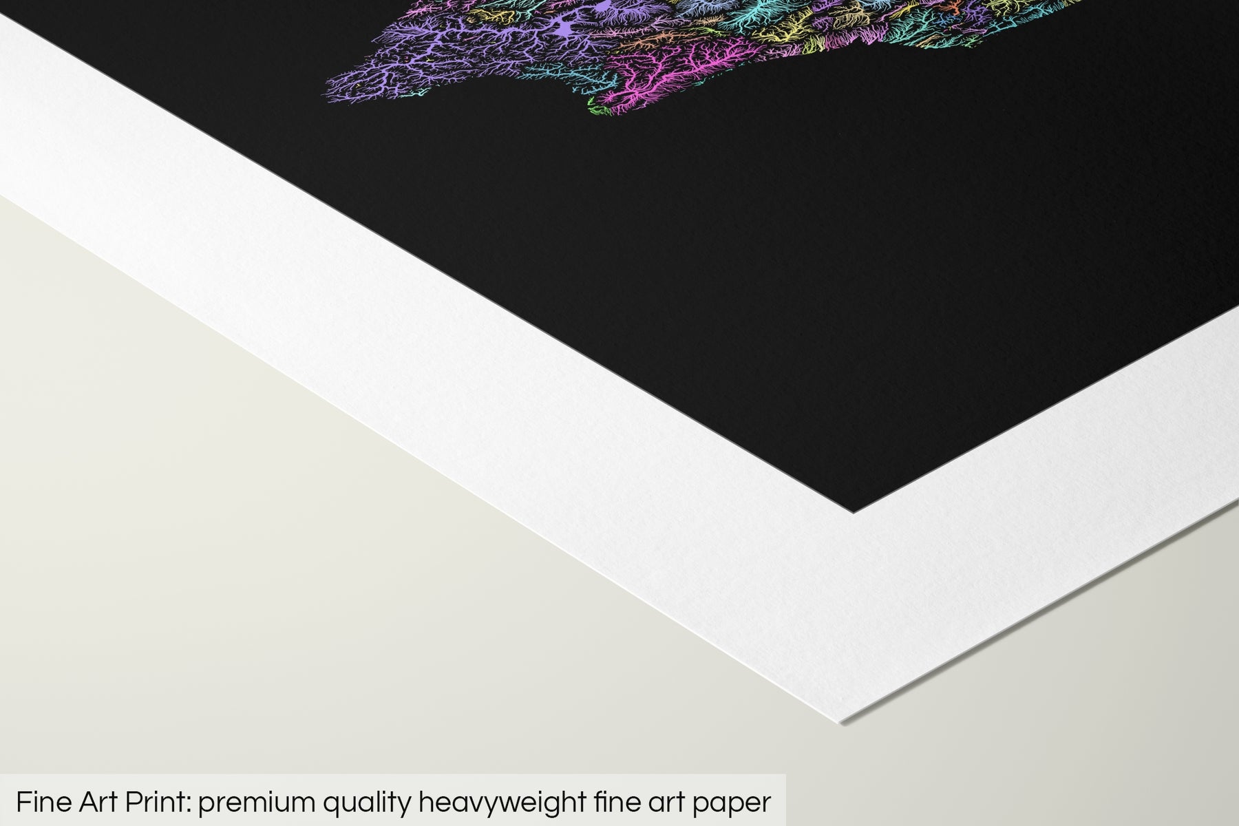 A premium quality heavyweight (200gsm) fine art print material with a smooth, clean finish. This museum-quality paper is remarkably consistent and works perfectly with our colourful maps. The matte finish emphasises different highlights and tones in all of our maps, helping to create stunning works of art.