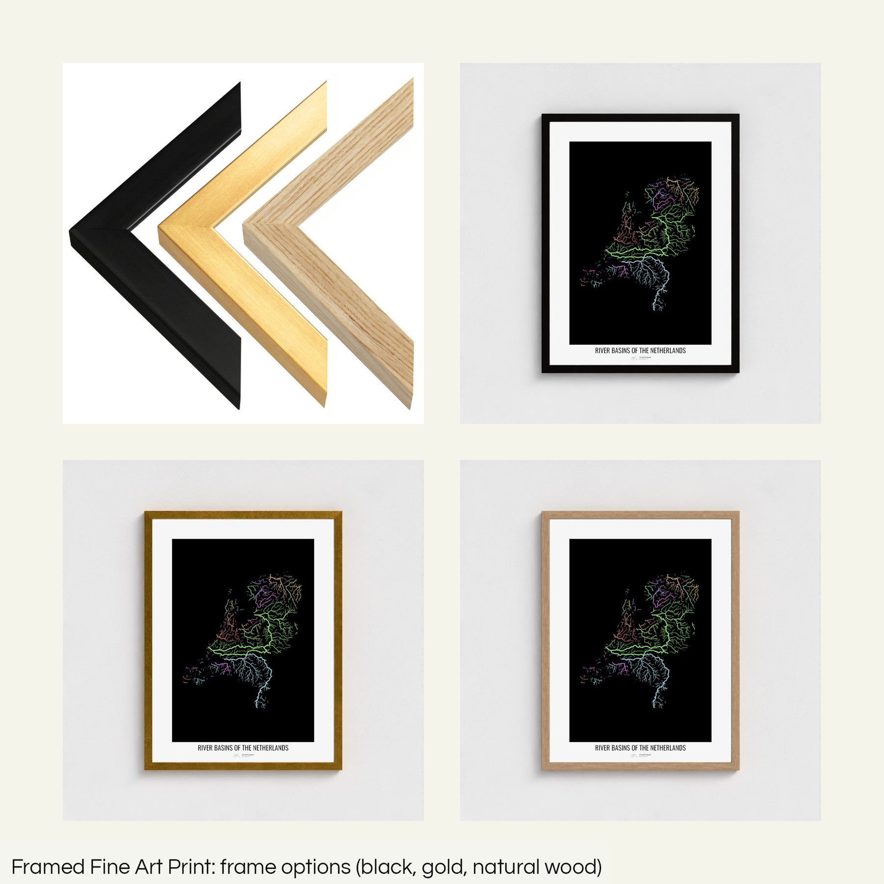 Netherlands - River basin map, pastel colours - Wall Art