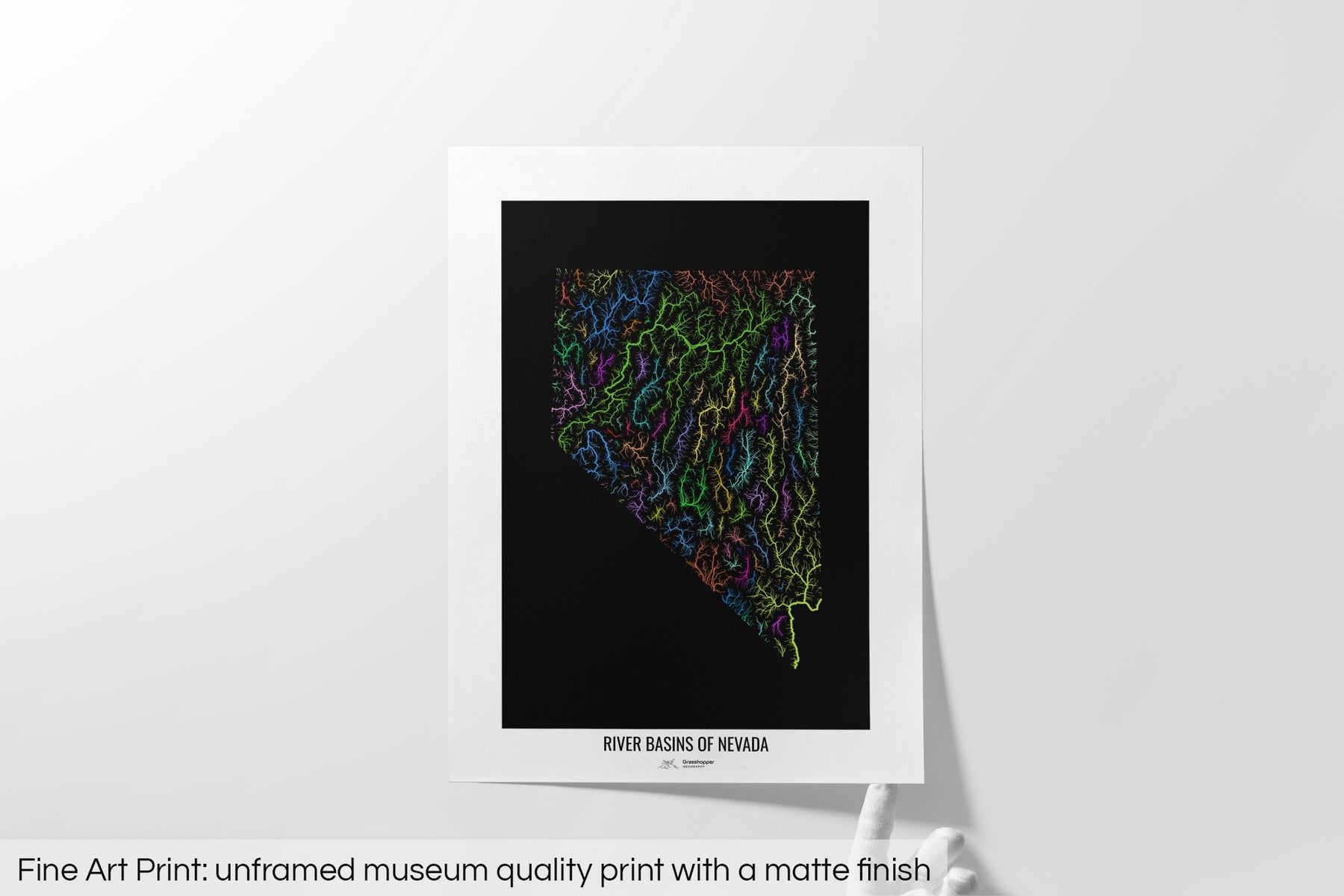 This high-resolution river basin map shows each catchment area in a different colour. Its vibrant colour scheme makes this map a lively addition to any space.