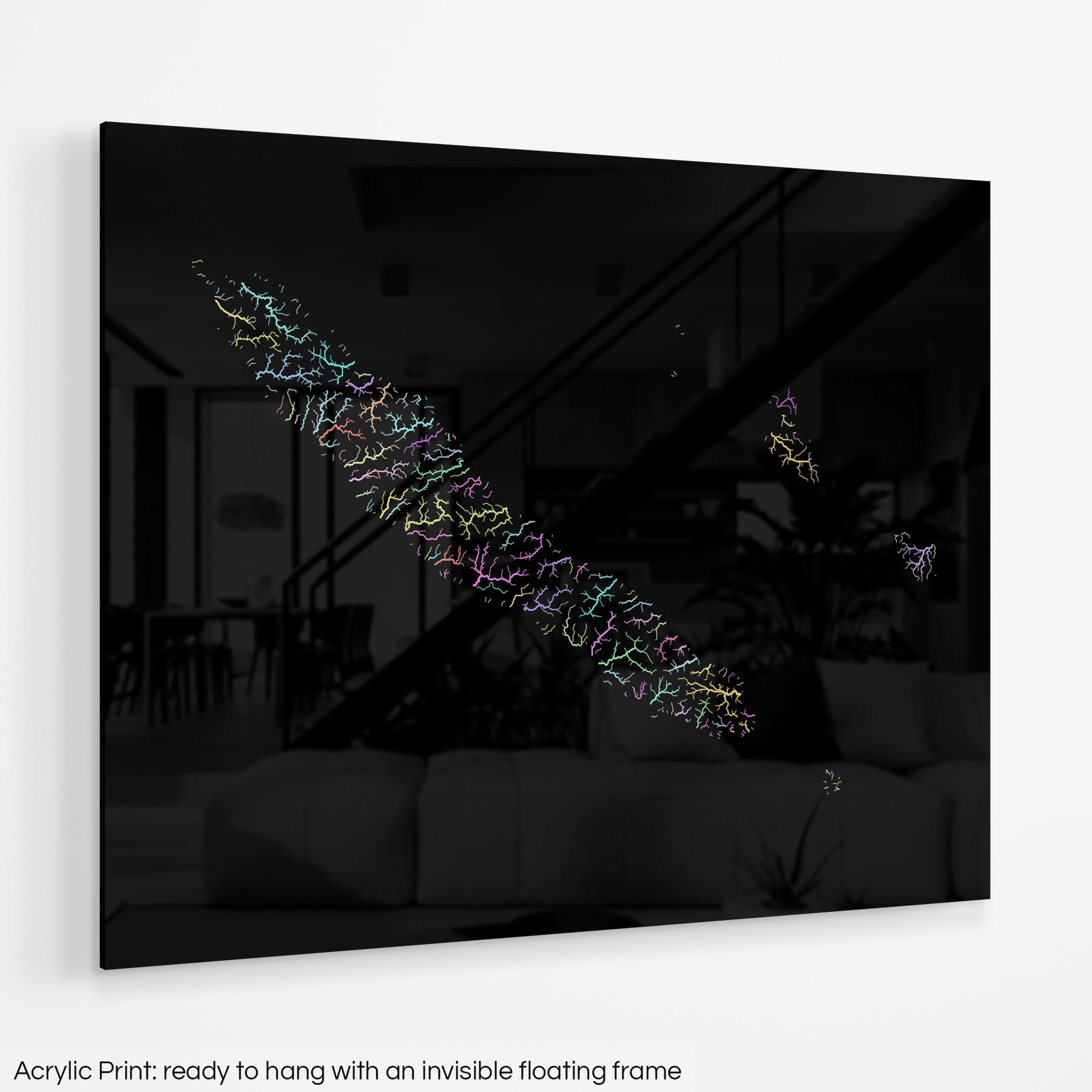 A fine art Giclée print is hand mounted onto 10mm thick high-gloss acrylic perspex that will protect your map from harmful UV light, keeping colours fresh and vivid for years to come.